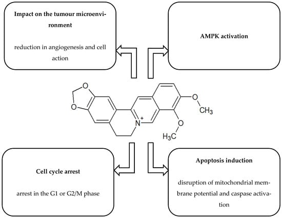 Overall, BBR exhibits multidirectional anticancer activity in various animal models, including inhibition of tumour growth, induction of apoptosis, modulation of inflammatory pathways, and enhancement of combination therapy efficacy. The accumulated evidence confirms its potential as a promising component of therapeutic strategies for the treatment of diverse cancers.