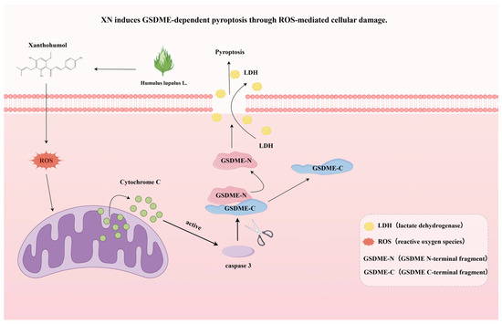 A schematic summary of this study, showing that XN induces GSDME-dependent pyroptosis through ROS-mediated cellular damage.