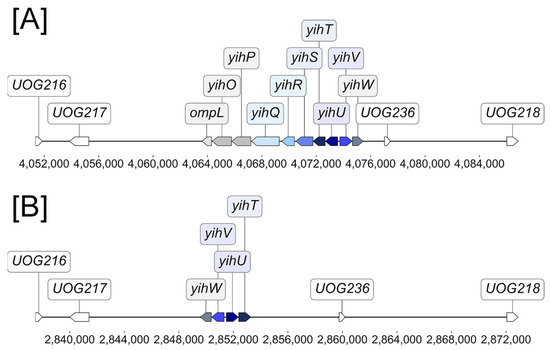 Kaznadzey, A.D.; Rybina, A.A.; Bessonova, T.A.; Korshunov, D.S.; Tutukina, M.N.; Gelfand, M.S. Sulfoquinovose Catabolism in E. coli Strains: Compositional and Functional Divergence of yih Gene Cassettes. Int. J. Mol. Sci. 2025, 26, 10351. https://doi.org/10.3390/ijms262110351