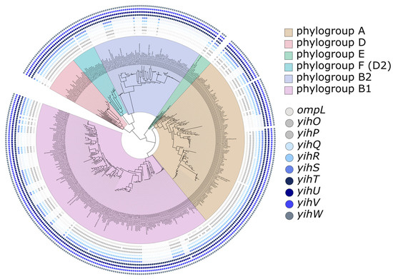 4.1. Distribution and Composition of yih Cassettes in E. coli Strains