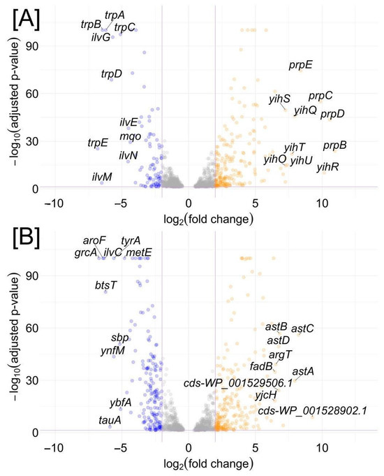 - Hua, Q.; Yang, C.; Oshima, T.; Mori, H.; Shimizu, K. Analysis of Gene Expression in Escherichia coli in Response to Changes of Growth-Limiting Nutrient in Chemostat Cultures. Appl. Environ. Microbiol. 2004, 70, 2354–2366. [Google Scholar] [CrossRef]