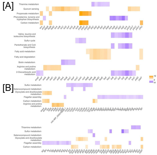2.3. Shared and Divergent Gene Expression Patterns in E. coli K-12 and Nissle 1917 in Response to SQ