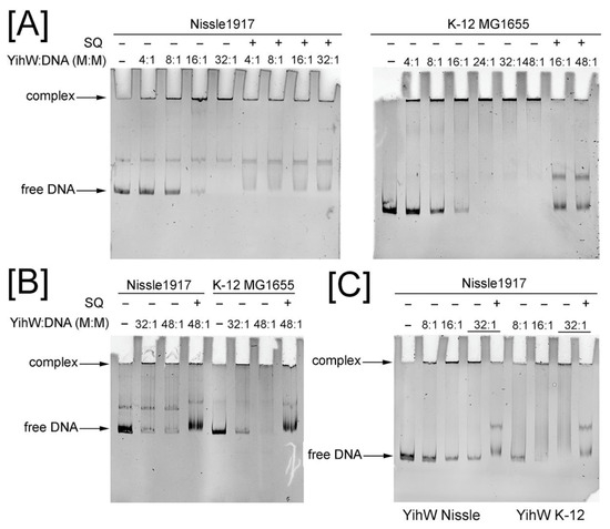 2.4. Binding of YihW (CsqR) to Intergenic Regions of Long and Short yih Cassettes