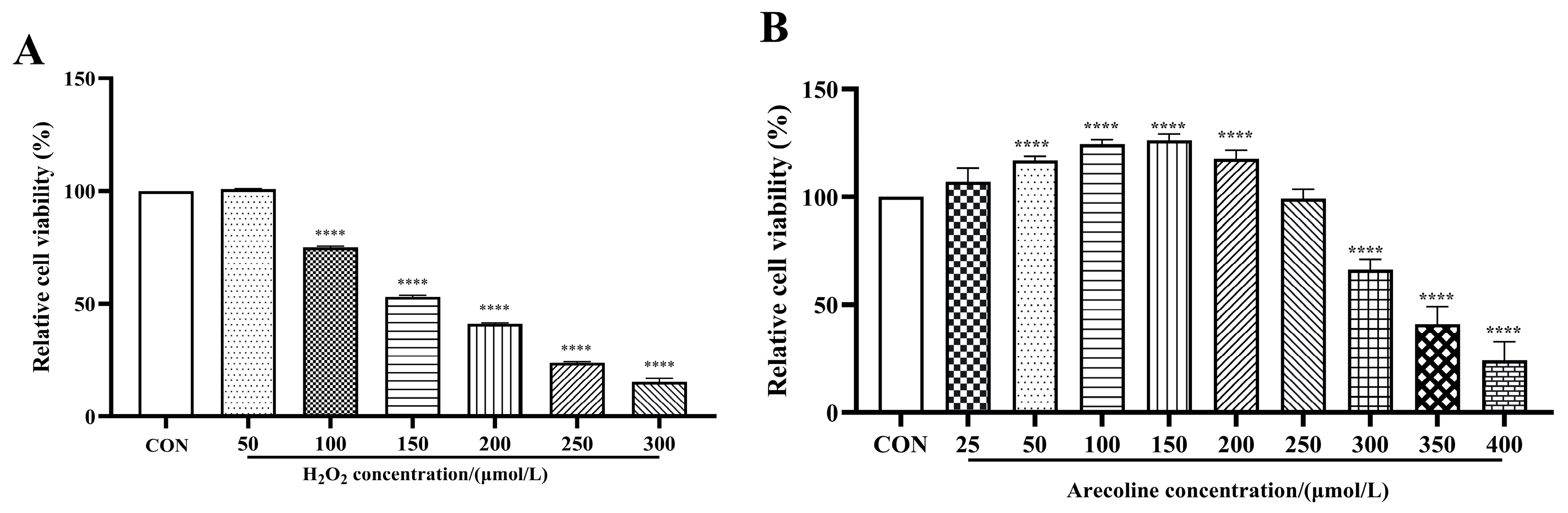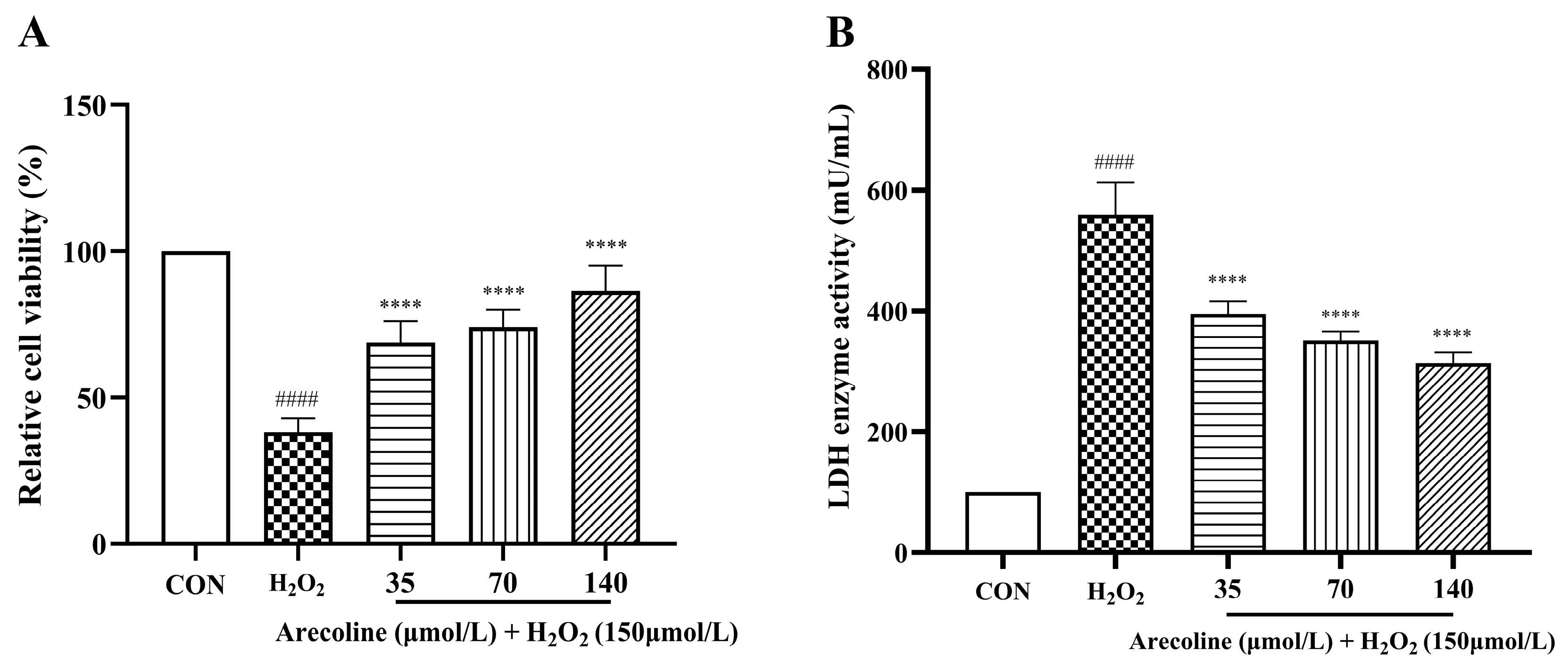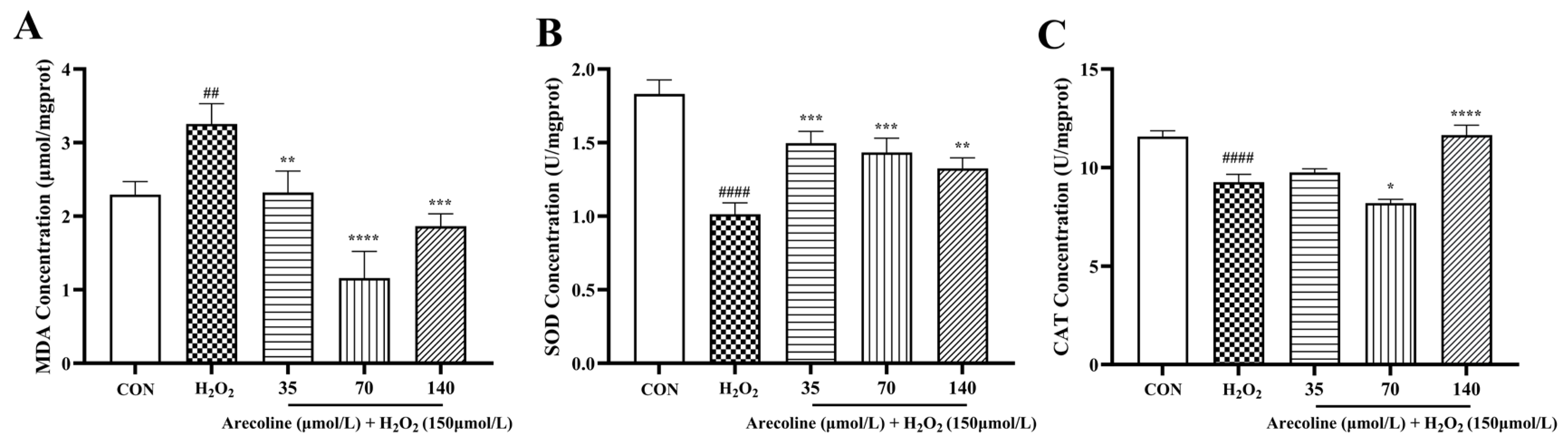 4.3. Establishment of the H2O2-Induced Cell Injury Model and Cytotoxicity of Arecoline