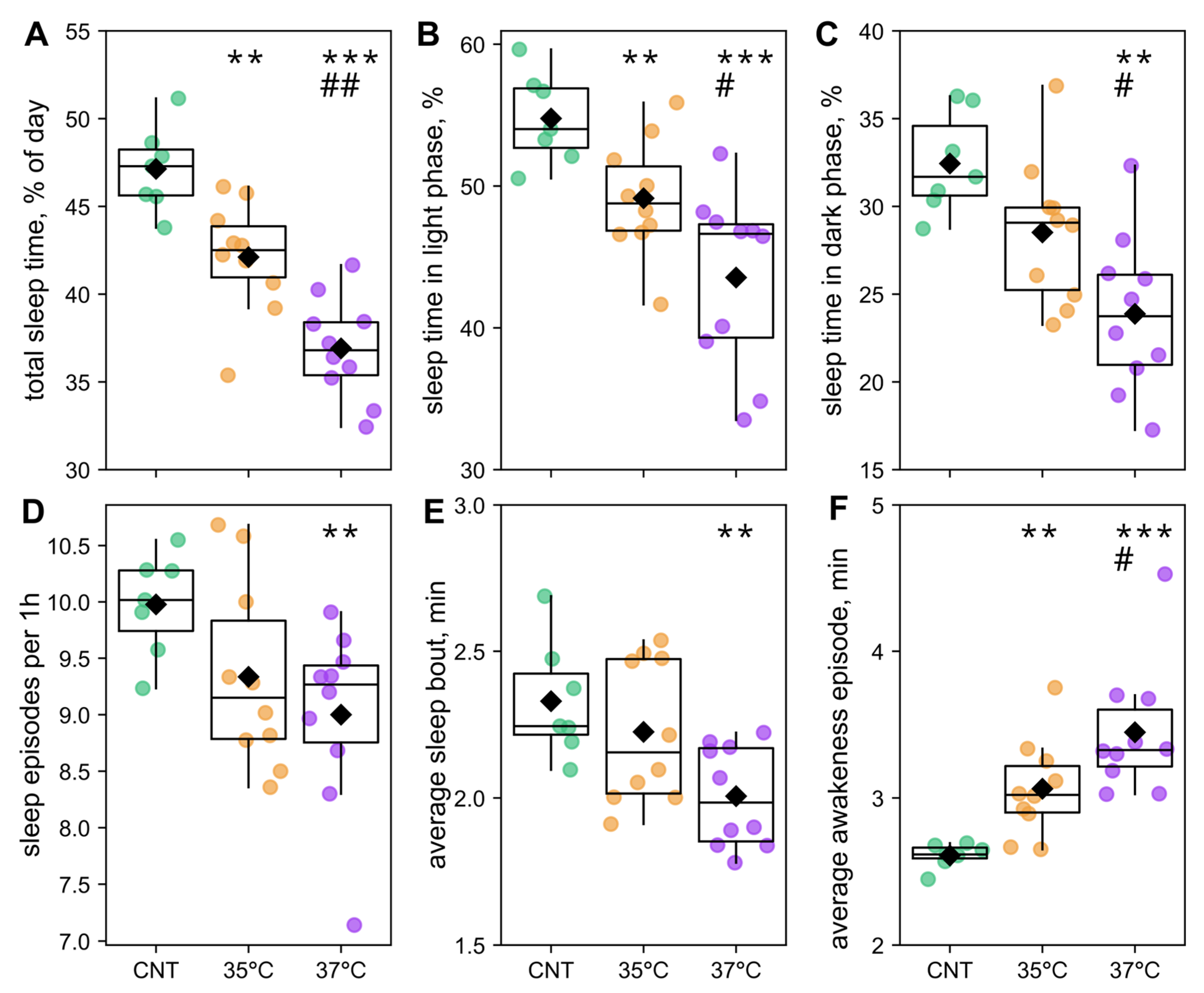2.4. The Effects of IVF and First-Cleavage Incubation Temperature on Offspring Sleep