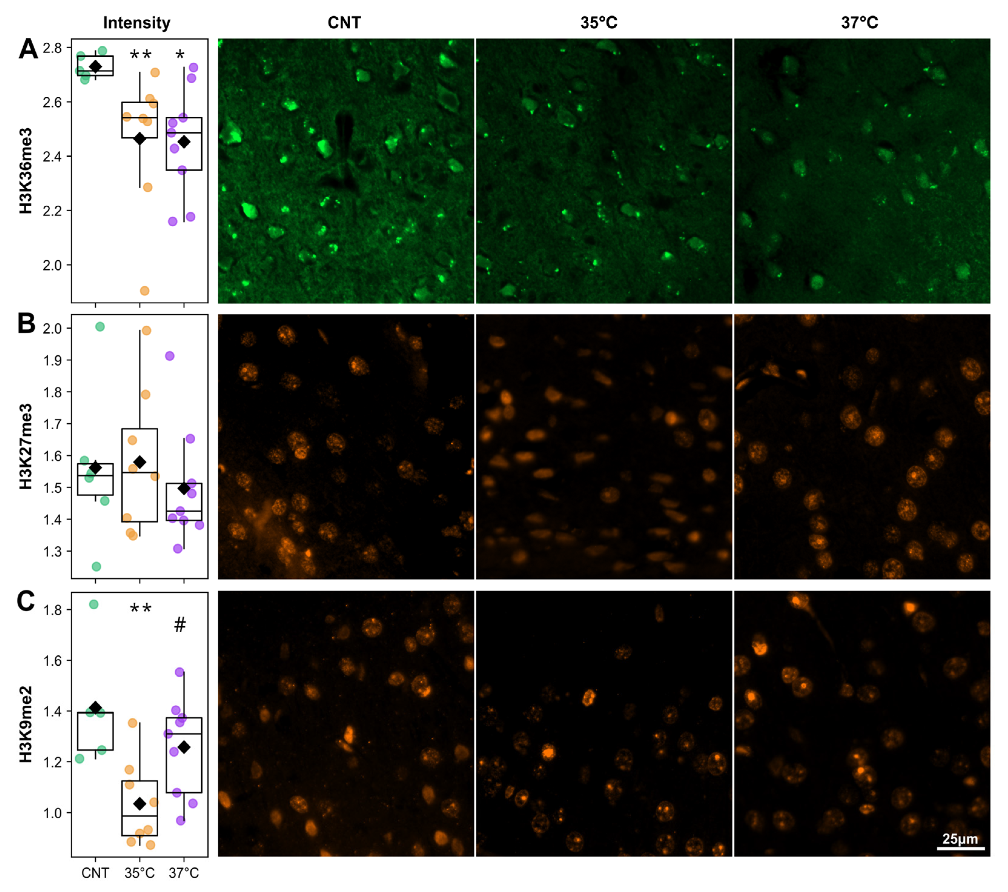 | 4909 | Cell Signaling (Waltham, MA, USA) | 1:200 | Rabbit | H3K36me3 |