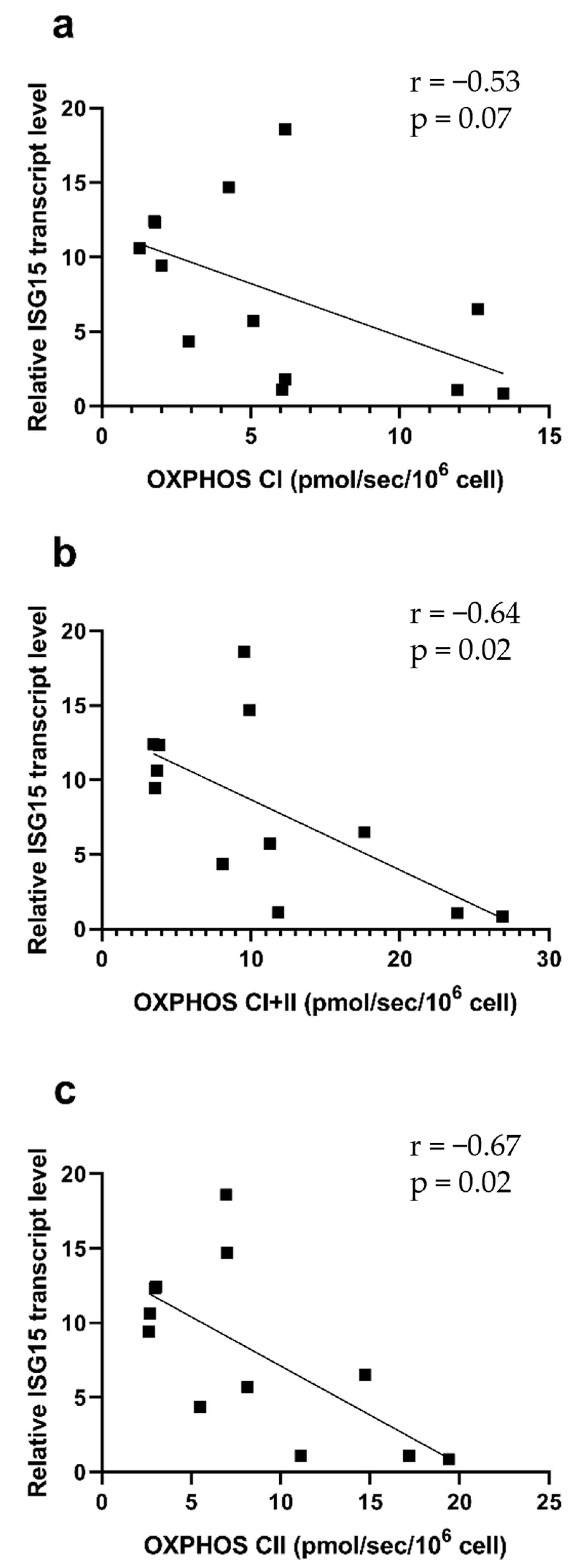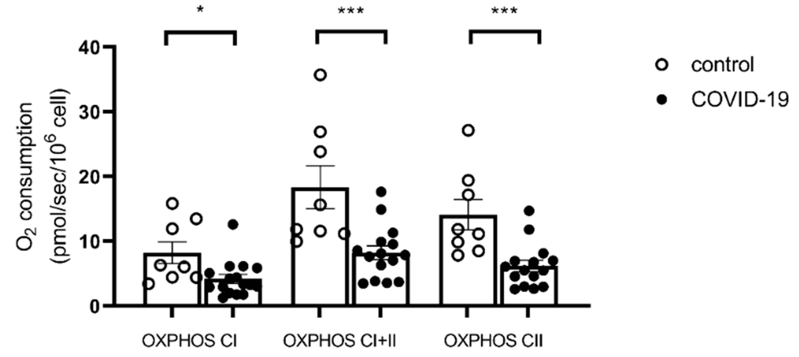 3.1. PBMC Mitochondrial Respiration Is Impaired in COVID-19 Patients