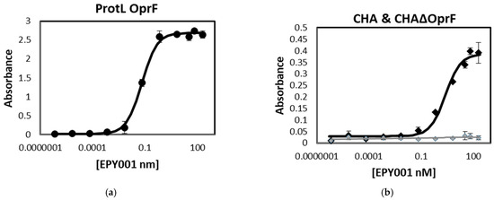 The binding affinity of the anti-OprF mAb EPY001 was assessed using an ELISA-based approach on OprF-reconstituted proteoliposomes (Figure 1a).