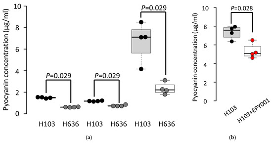 2.3.3. EPY001 Moderately Reduces Pyocyanin Production in P. aeruginosa H103