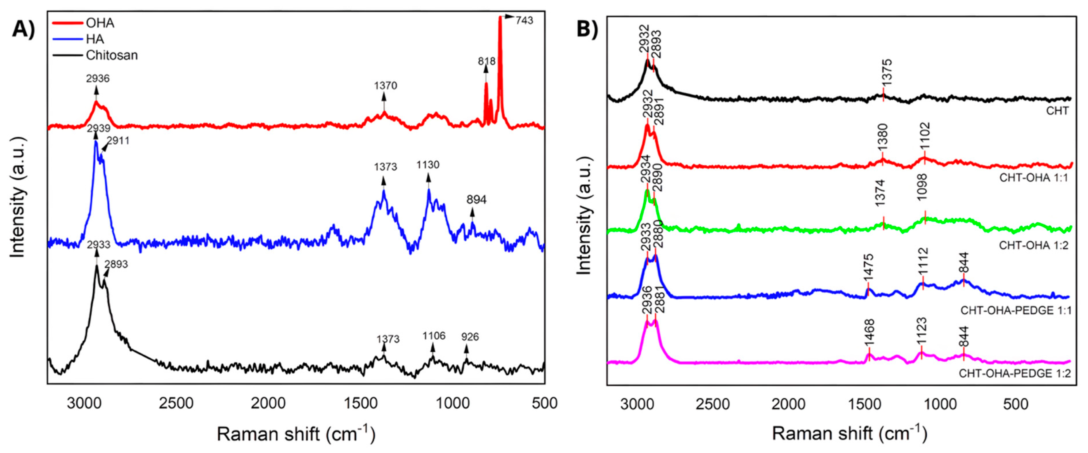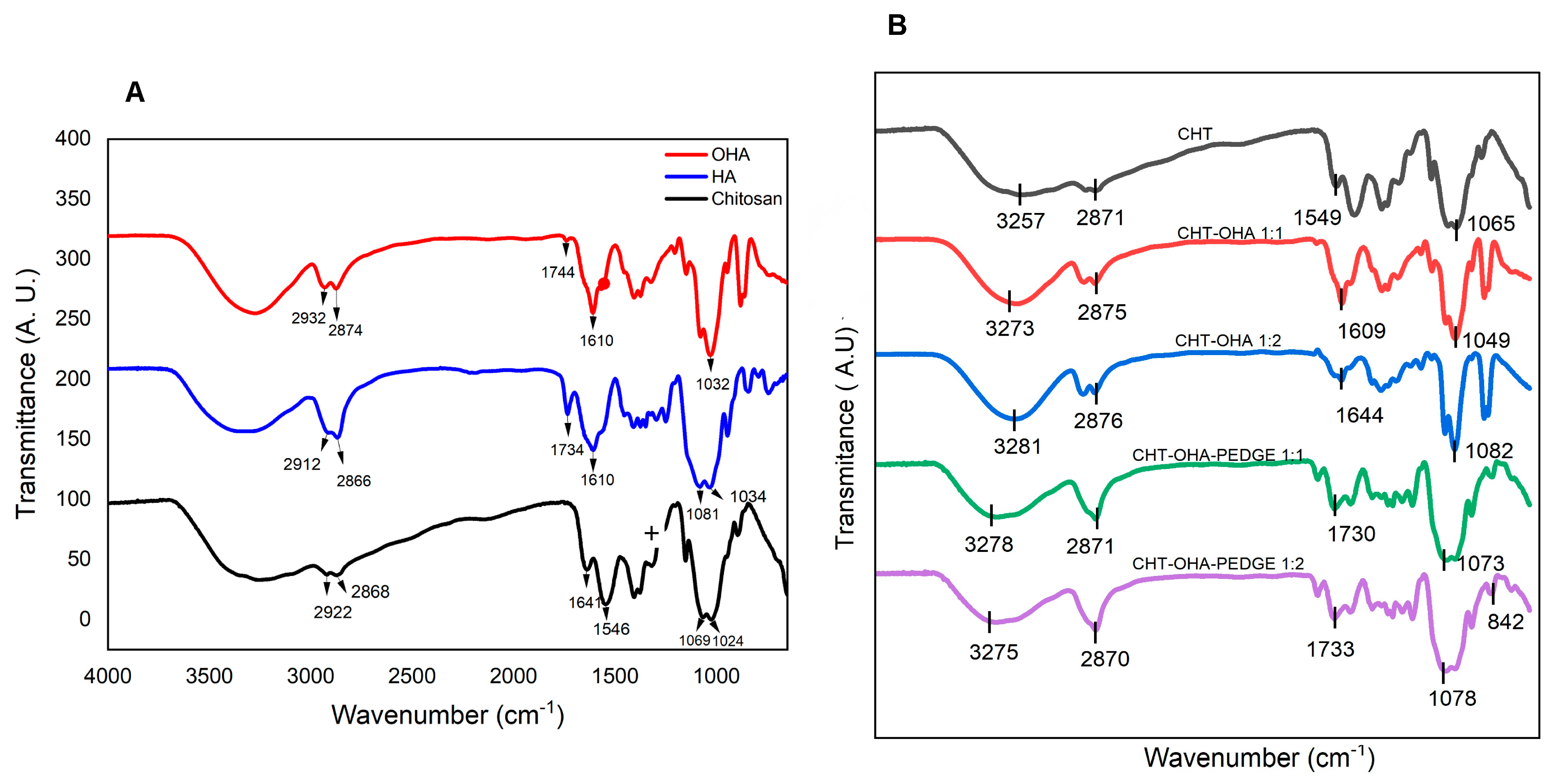 3.2.2. Preparation of Chitosan and Oxidized Hyaluronic Acid (OHA) Sponges in 1:1 and 1:2 Ratios