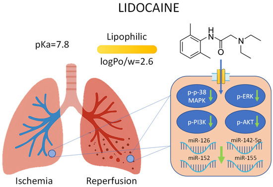 - Rancan, L.; Simón, C.; Marchal-Duval, E.; Casanova, J.; Paredes, S.D.; Calvo, A.; García, C.; Rincón, D.; Turrero, A.; Garutti, I.; et al. Lidocaine administration controls microRNAs alterations observed after lung ischemia-reperfusion injury. Anesth. Analg. 2016, 123, 1437–1447. [Google Scholar] [CrossRef] [PubMed]