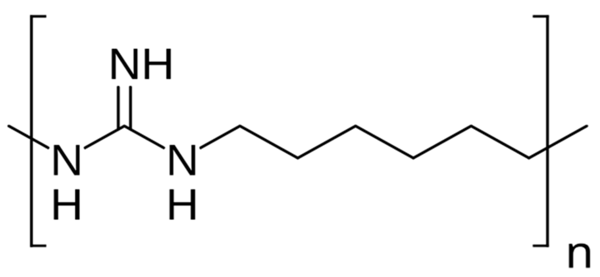 - Wikipedia. Polyhexamethylene Guanidine. Available online: https://en.wikipedia.org/w/index.php?title=Polyhexamethylene_guanidine&oldid=1308563462 (accessed on 30 August 2025).
