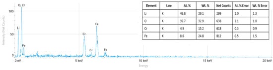 - Parajuli, D.; Murali, N.; Samatha, K.; Veeraiah, V. Thermal, structural, morphological, functional group and first cycle charge/discharge study of co substituted LiNi1X-0.02Mg0.02CoXO2 (x = 0.00, 0.02, 0.04,0.06, and 0.08) cathode material for libs. AIP Adv. 2022, 12, 085010. [Google Scholar] [CrossRef]