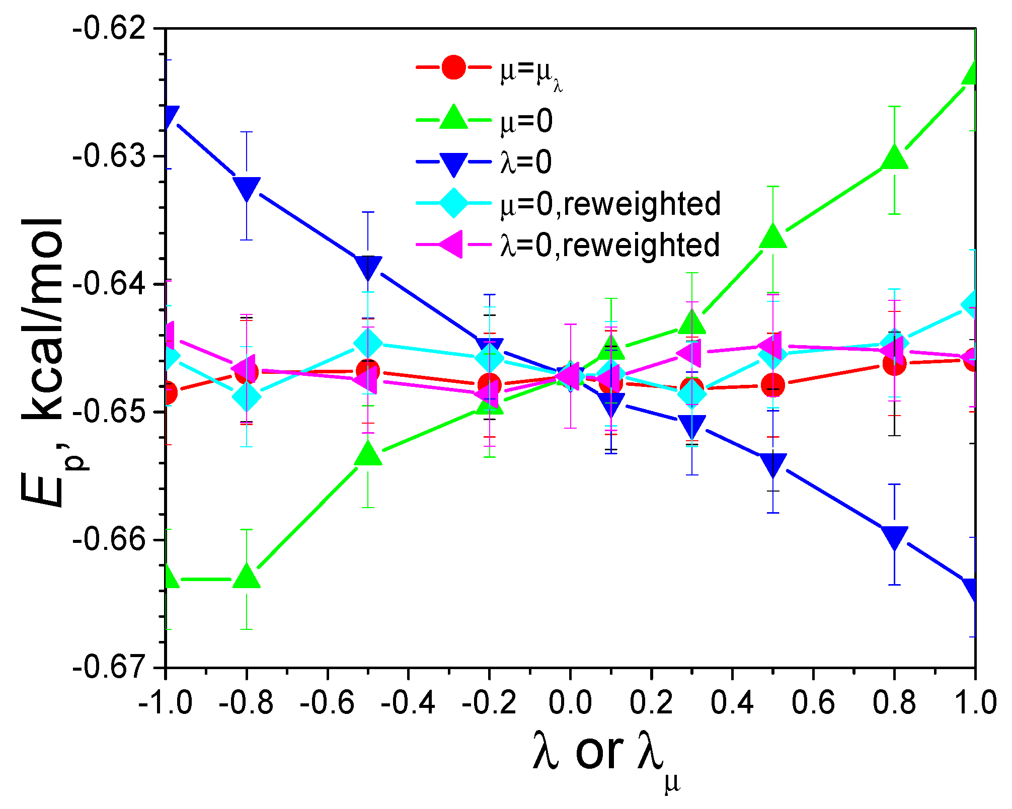 - Wu, X.; Brooks, B.R. Reformulation of the self-guided molecular simulation method. J. Chem. Phys. 2020, 153, 094112. [Google Scholar] [CrossRef]