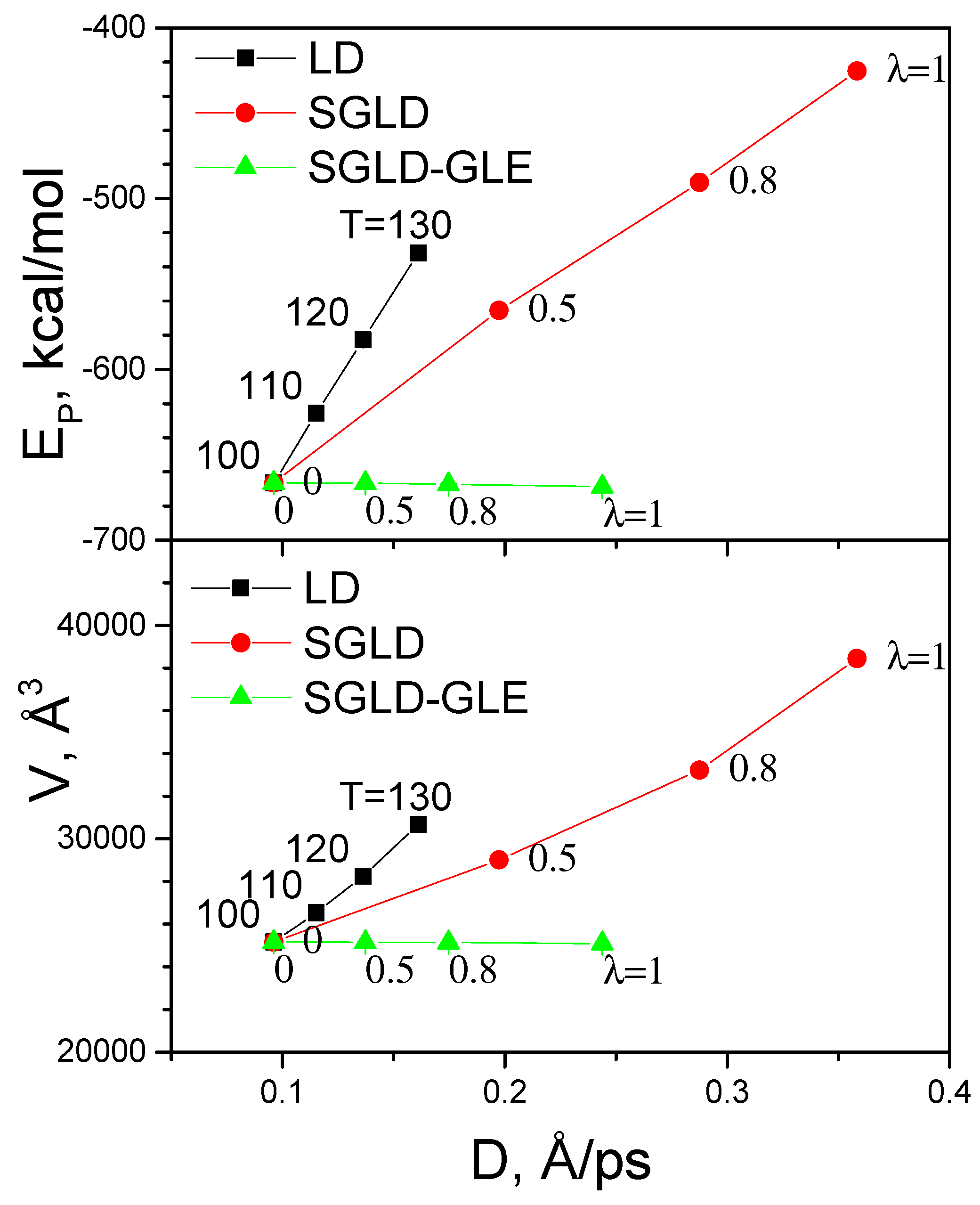 - Wu, X.; Brooks, B.R. Toward canonical ensemble distribution from self-guided Langevin dynamics simulation. J. Chem. Phys. 2011, 134, 134108. [Google Scholar] [CrossRef] [PubMed]