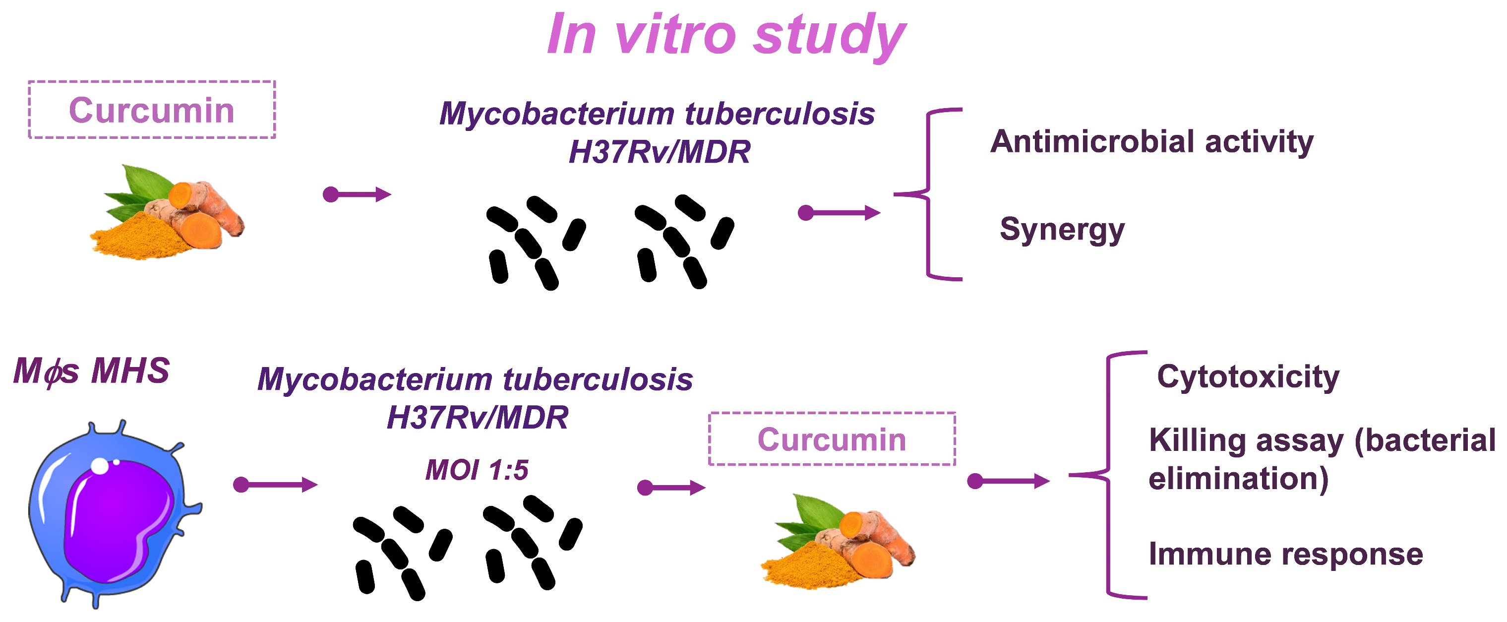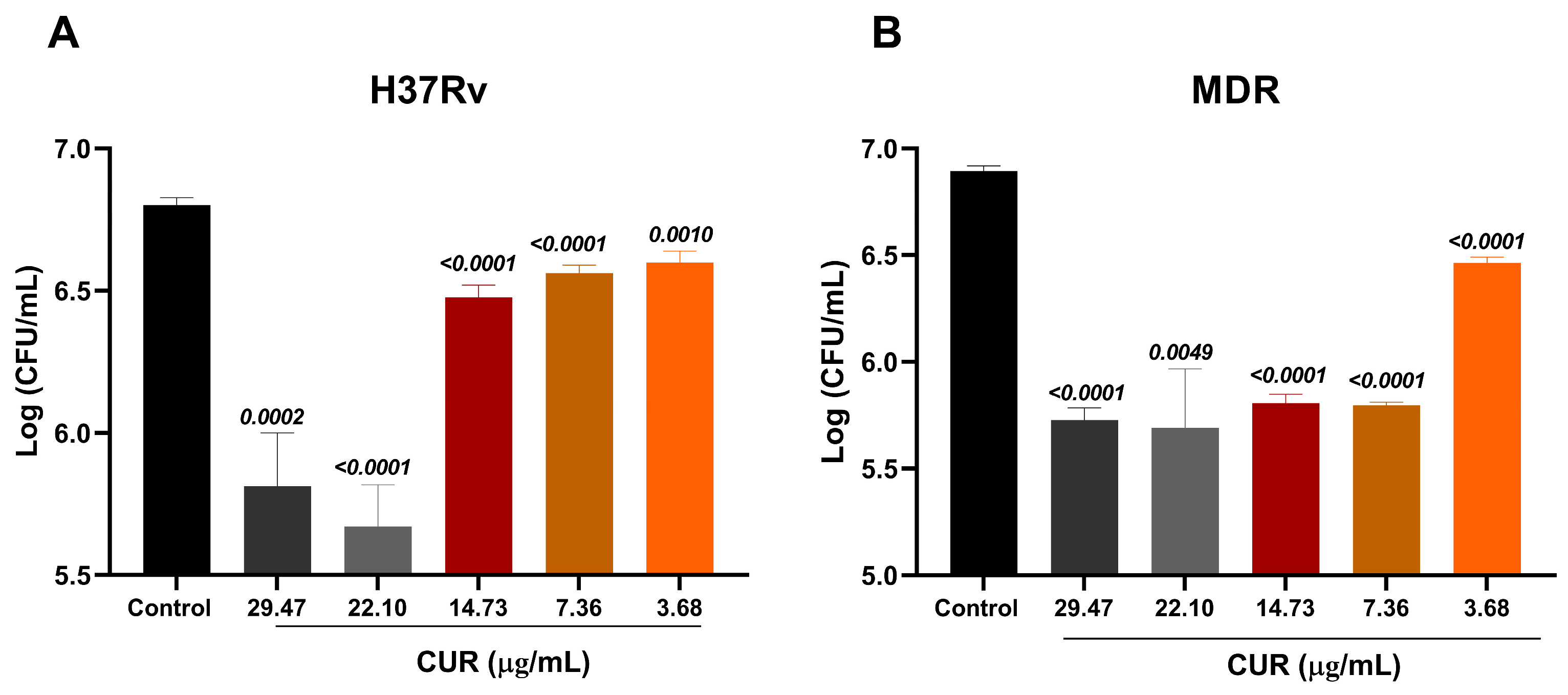 2.1. Antimicrobial Activity of Curcumin on Mtb