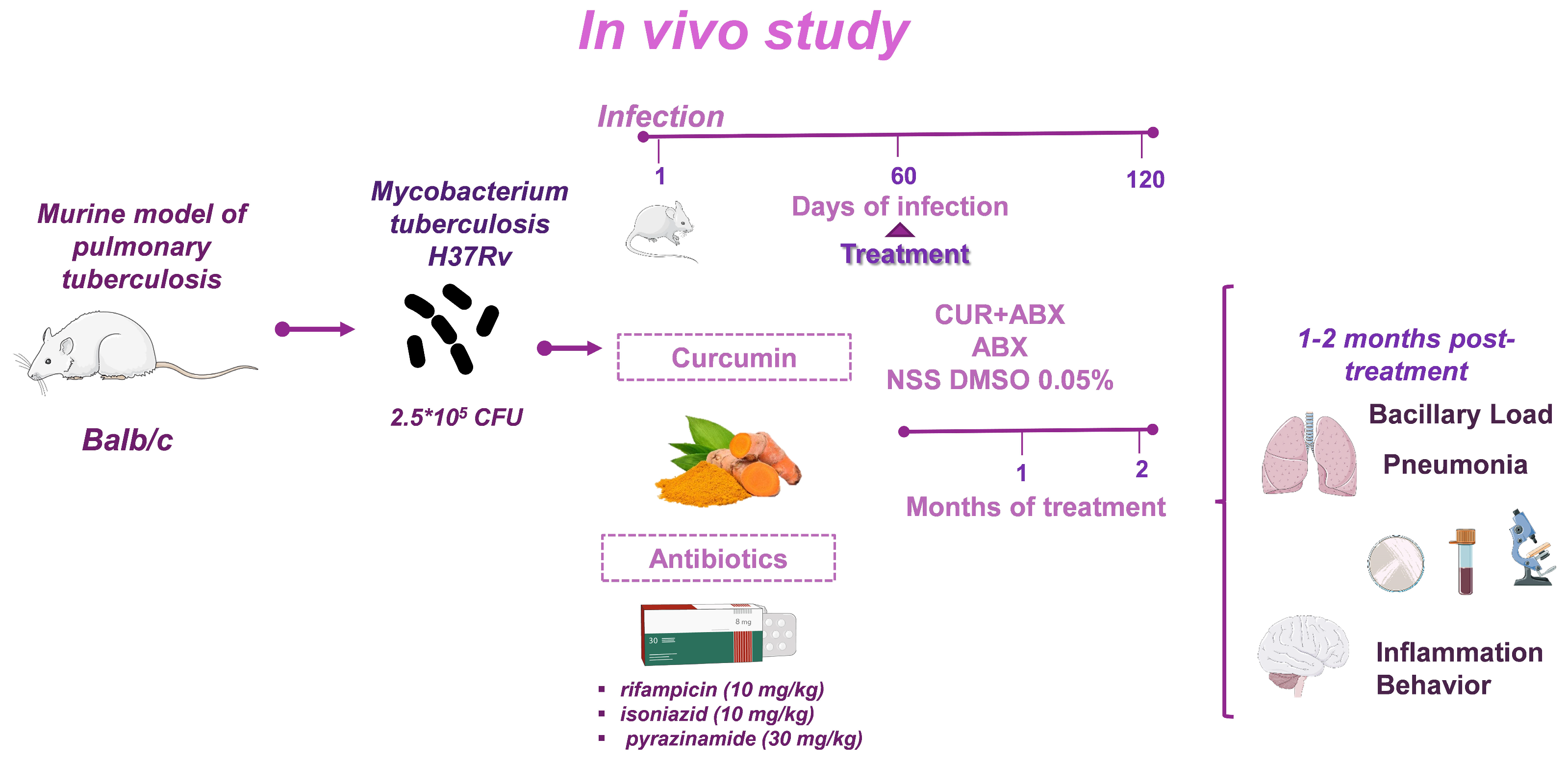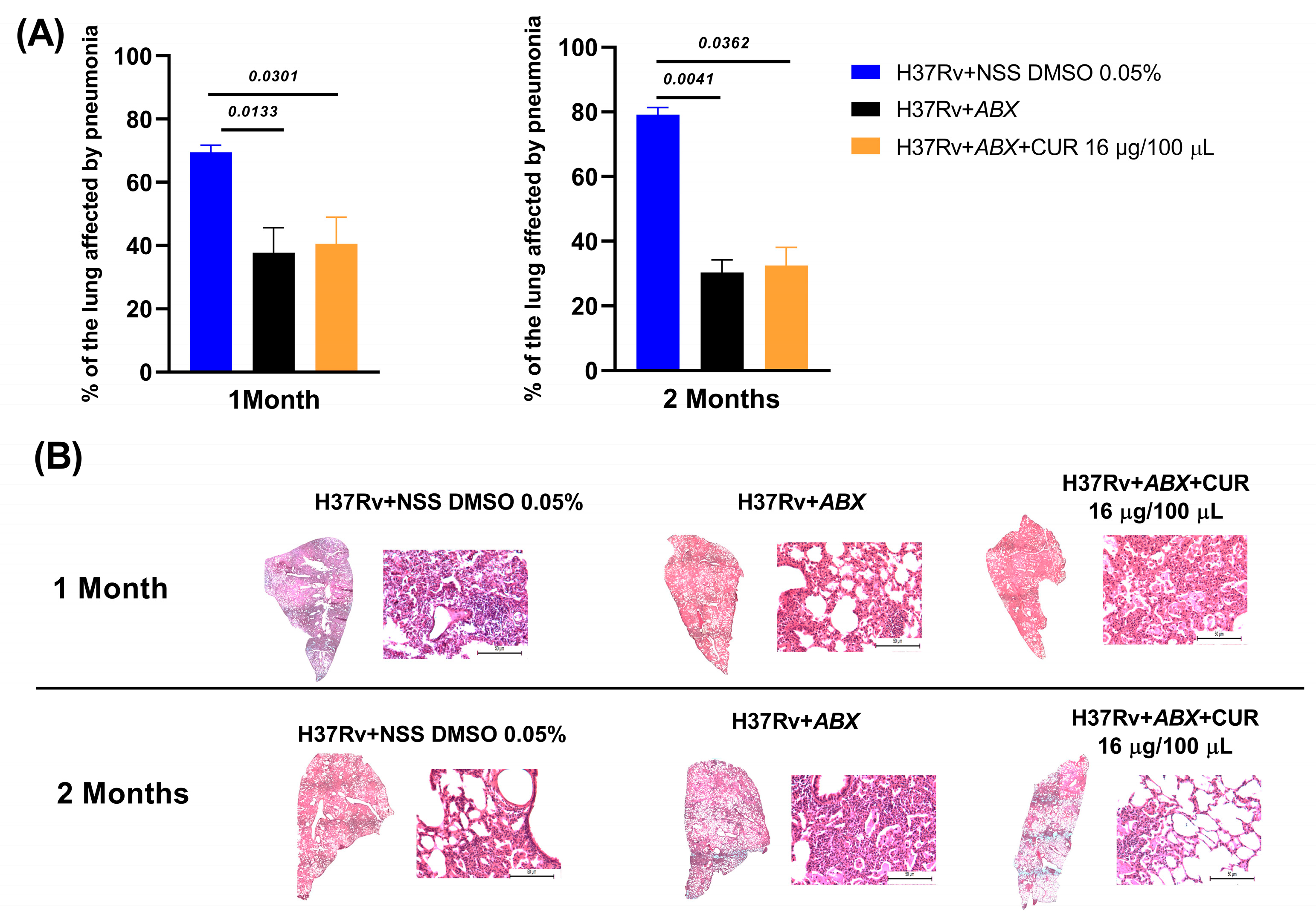 | H37Rv + ABX+ Curcumin | 24 (12 per time of euthanasia) |