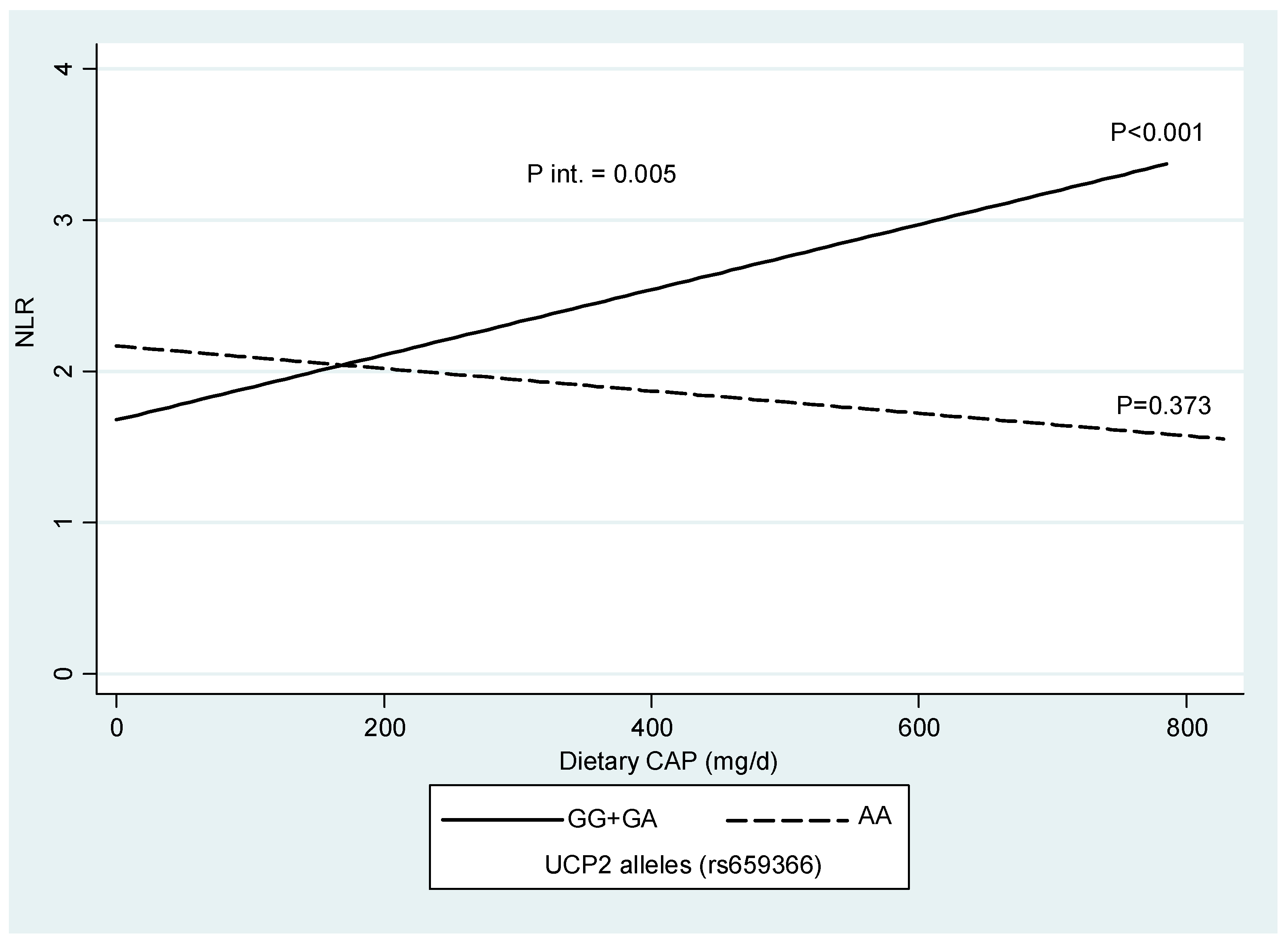 2.5. Interaction Between UCP2 rs659366 Polymorphism, Dietary Capsaicin Intake and NLR