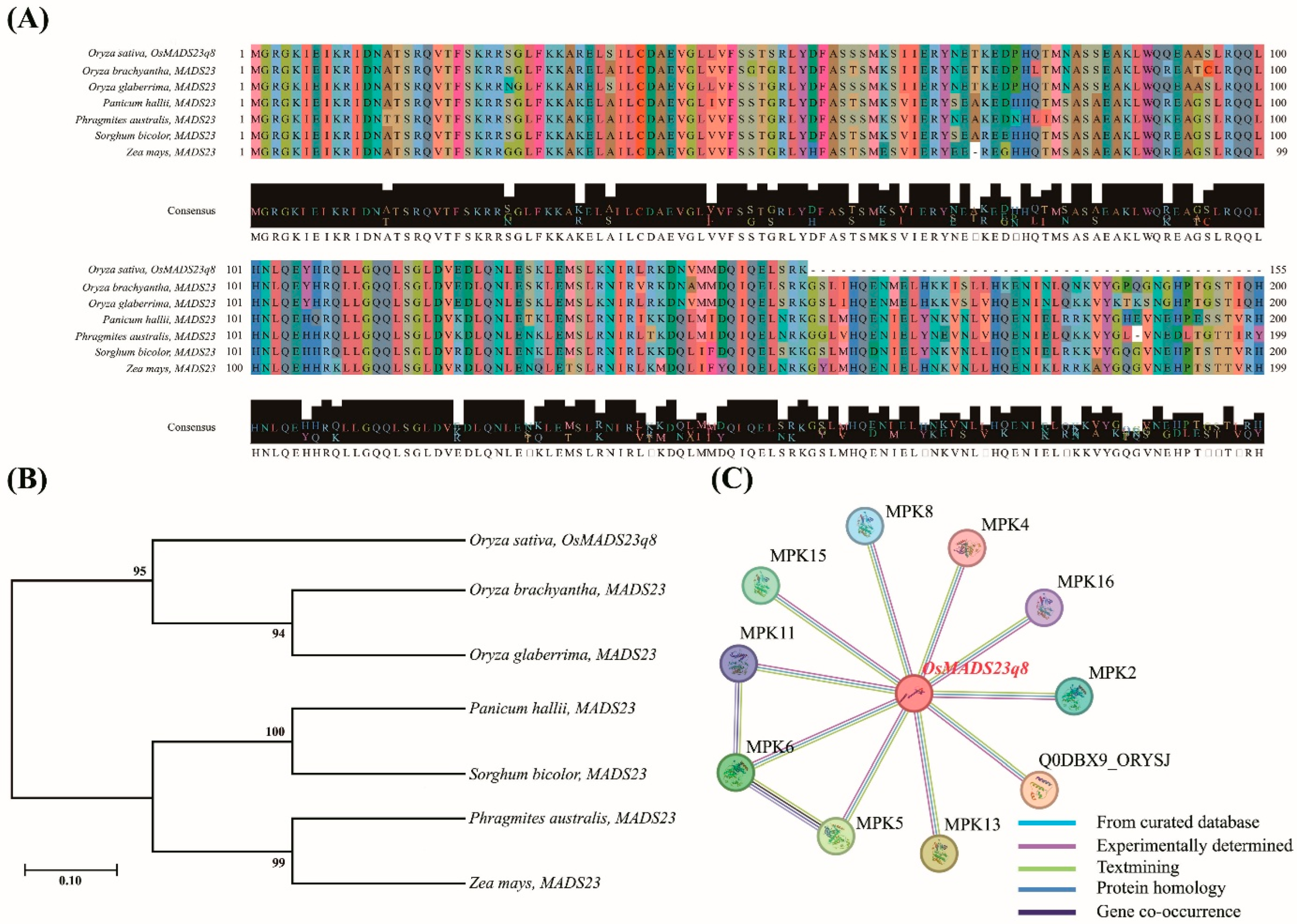 - Li, X.; Yu, B.; Wu, Q.; Min, Q.; Zeng, R.; Xie, Z.; Huang, J. OsMADS23 phosphorylated by SAPK9 confers drought and salt tolerance by regulating ABA biosynthesis in rice. PLoS Genet. 2021, 17, e1009699. [Google Scholar] [CrossRef] [PubMed]
