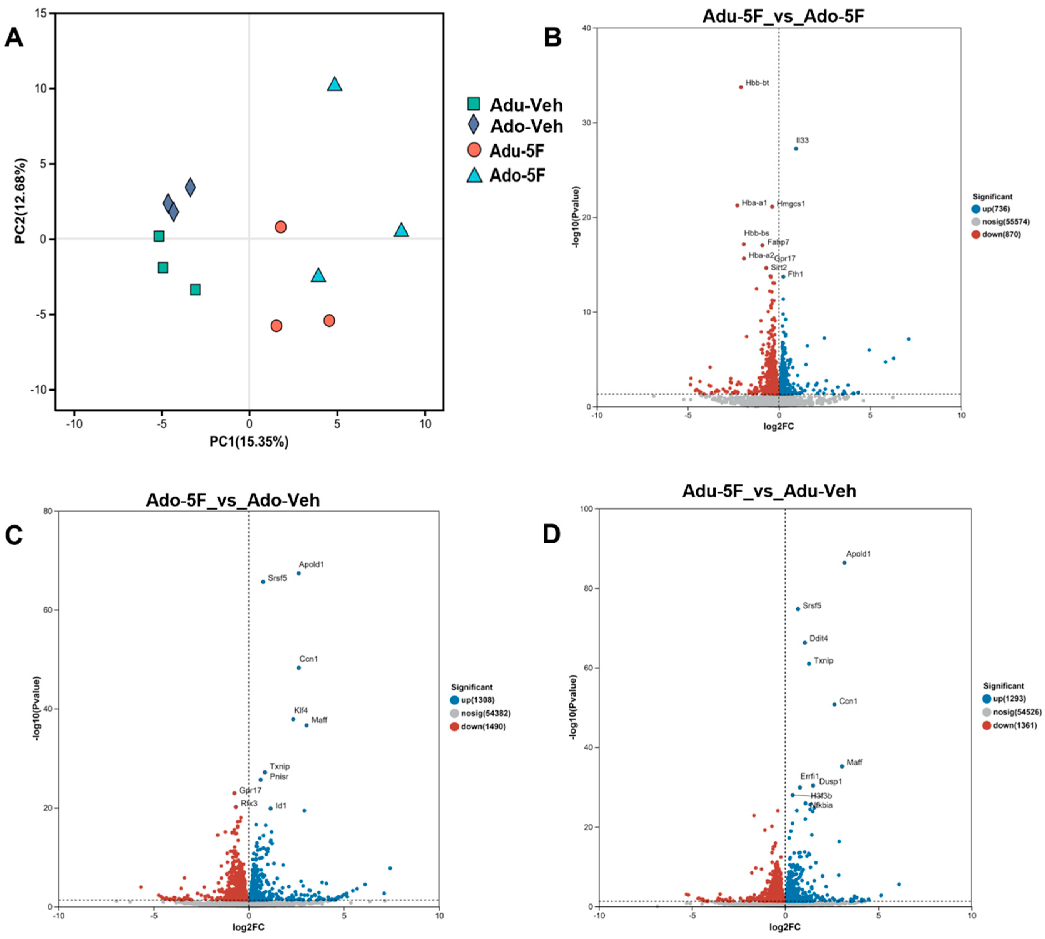 23]. Our transcriptomic findings further elucidate the causal relationship between high-affinity cannabinoid receptors and the transcriptome. We propose that these genes should be prioritized in subsequent studies to investigate the mechanisms underlying memory impairments in adolescence and adulthood following acute exposure to 5F-EDMB-PICA, necessitating more in-depth research.