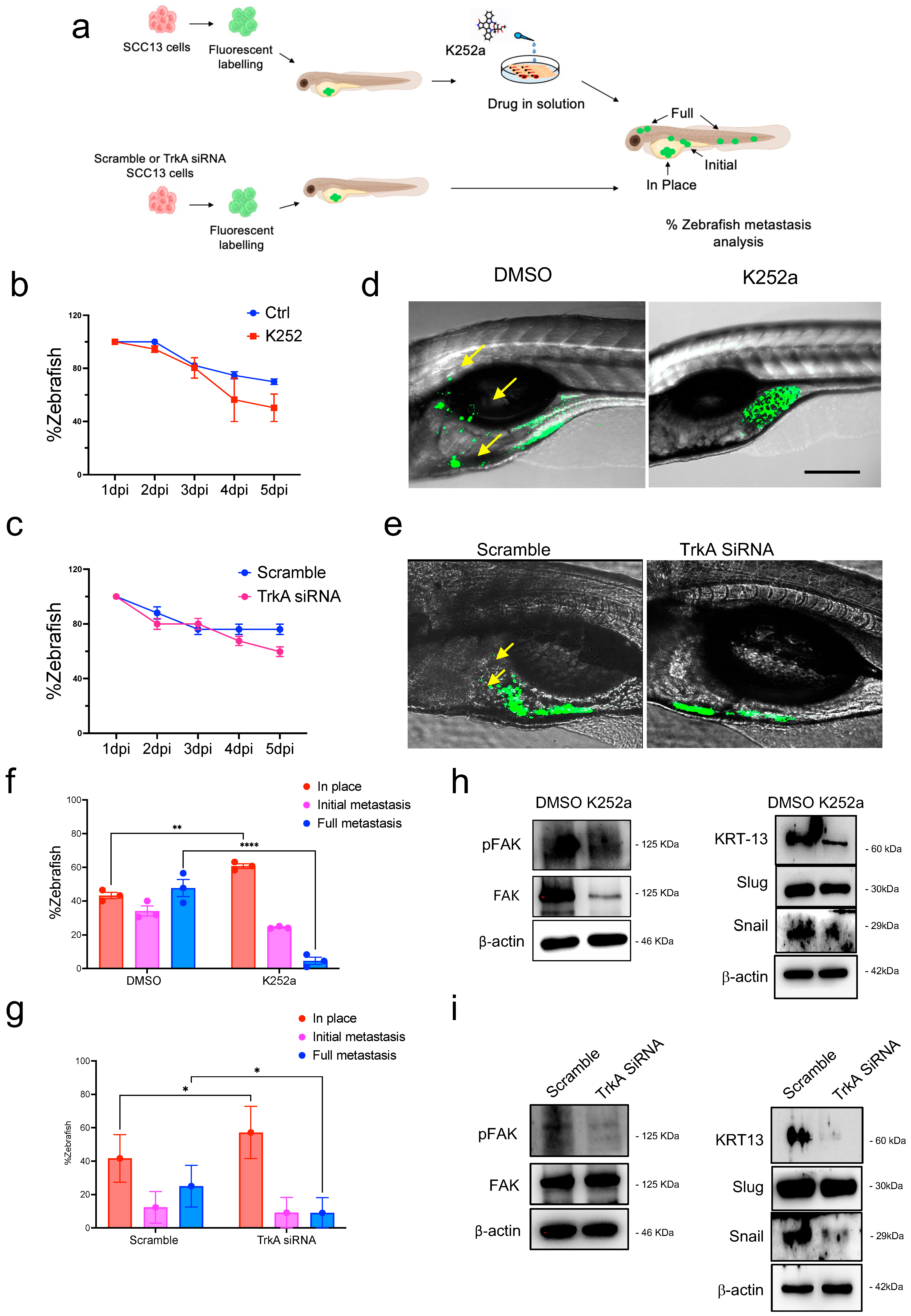 Quadri, M.; Tiso, N.; Iuliano, M.; Rosa, P.; Lotti, R.; Mangino, G.; Marconi, A.; Palazzo, E. Trk Signaling Inhibition Reduces cSCC Growth and Invasion in In Vitro and Zebrafish Models and Enhances Photodynamic Therapy Outcome. Int. J. Mol. Sci. 2025, 26, 10434. https://doi.org/10.3390/ijms262110434