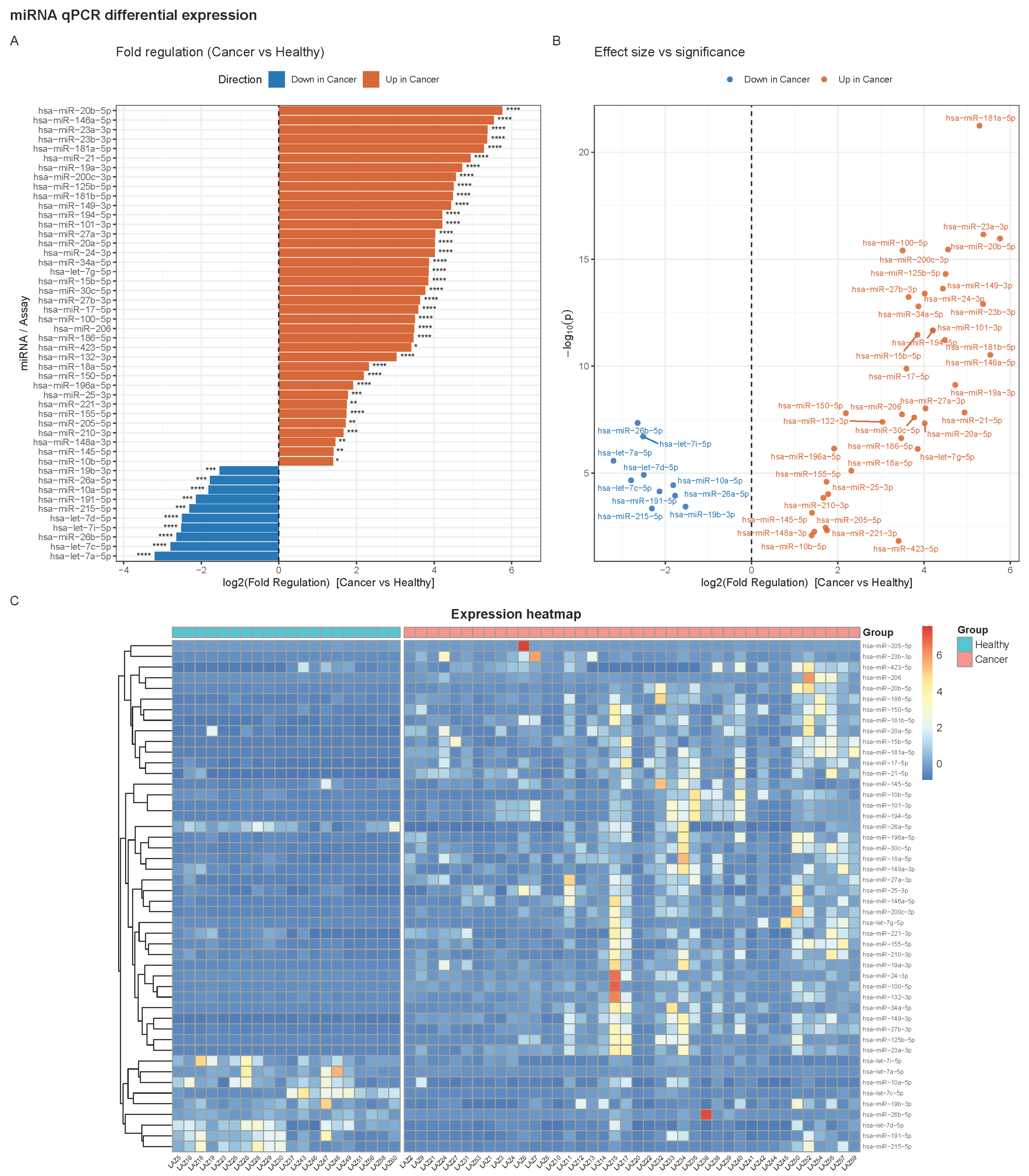 2.1. Differential Expression of miRNAs Between Cancer and Healthy Groups