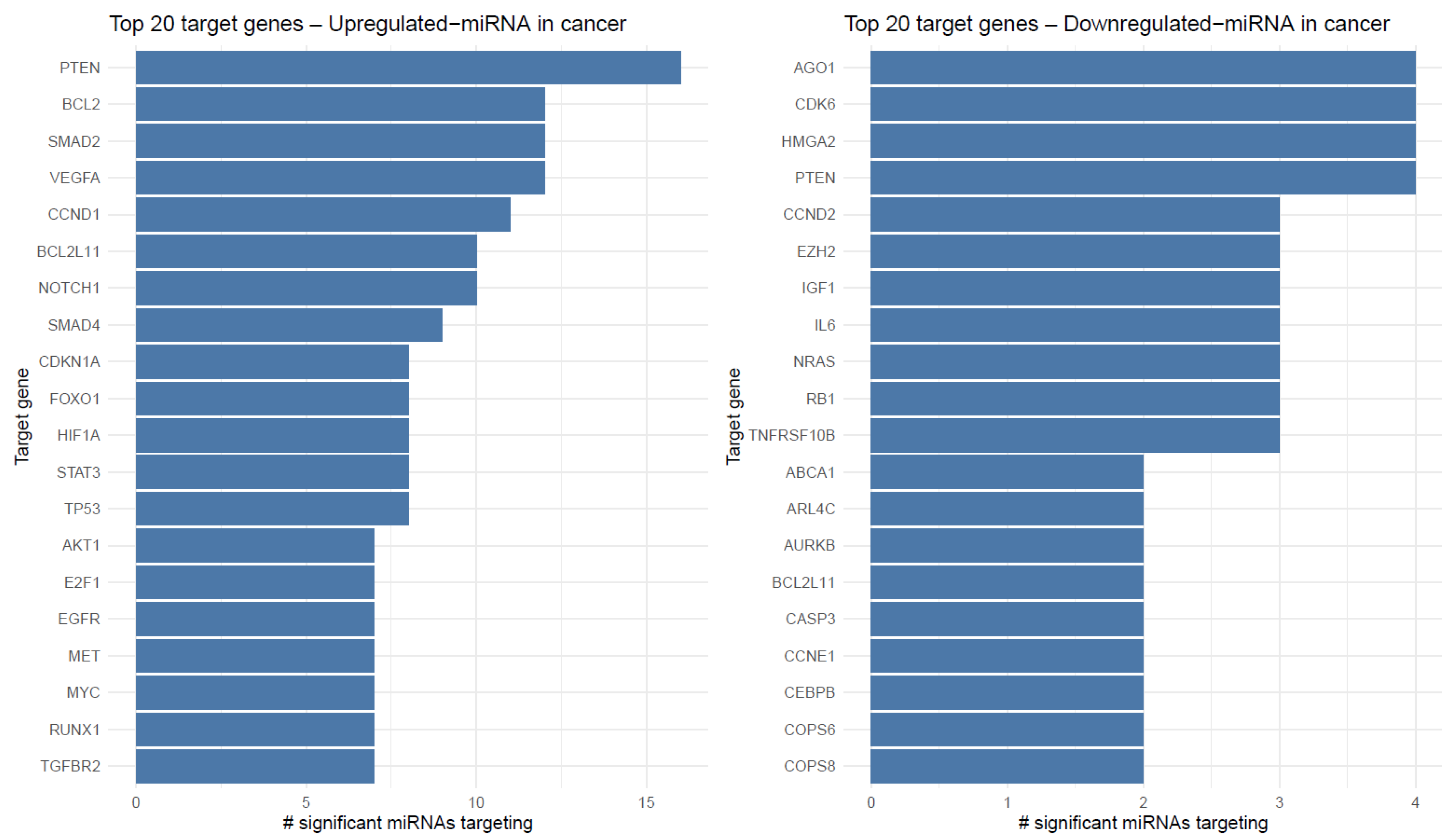 2.3. Functional Enrichment of Target Gene Sets