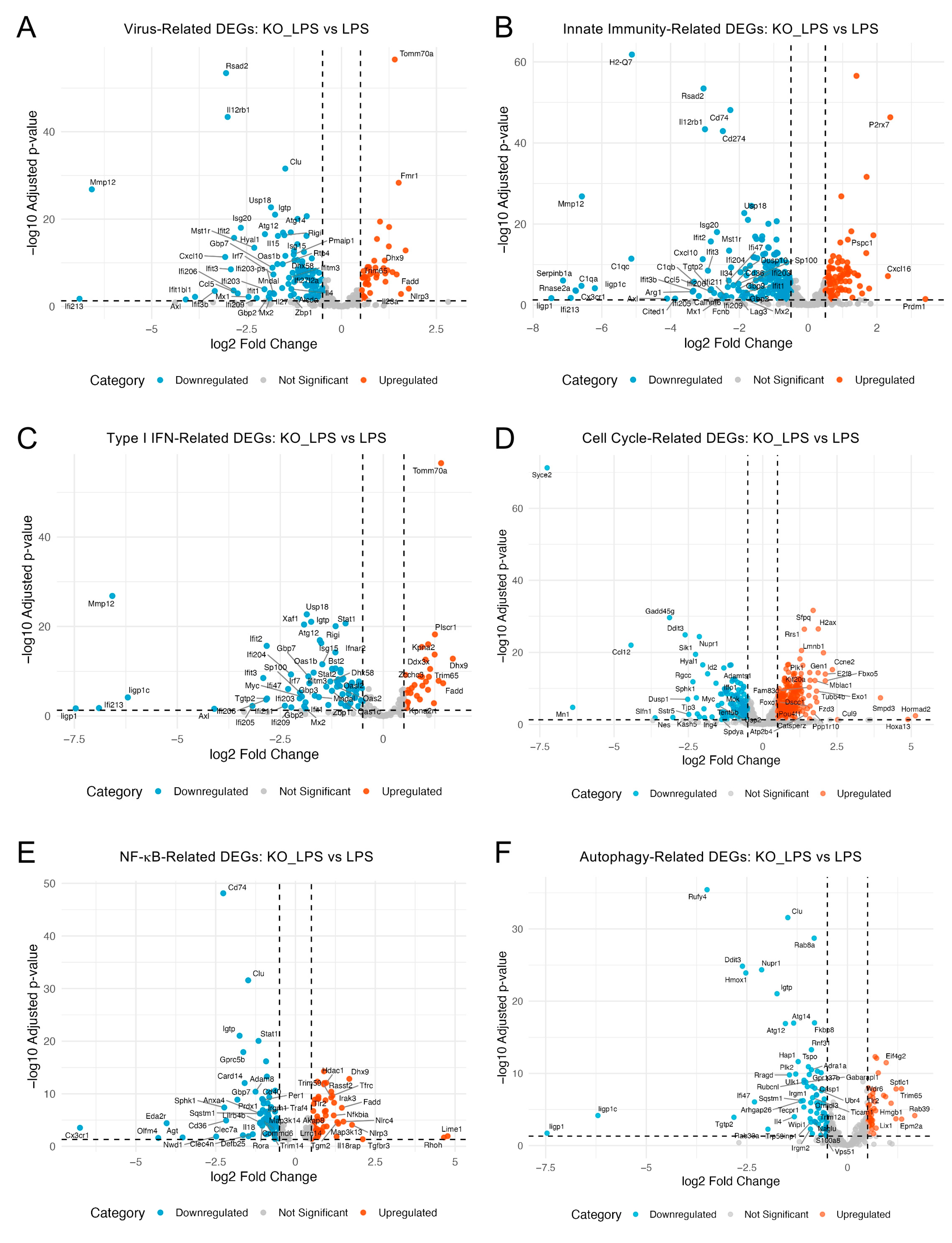 2.4. Optineurin Deficiency Attenuated LPS-Induced Inflammatory Transcriptome