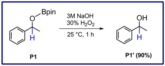 Hydrolysis of the selected boronate ester (P1) afforded the corresponding alcohol in high yield, which proves that the proposed synthetic protocol is a convenient method for obtaining secondary alcohols.
