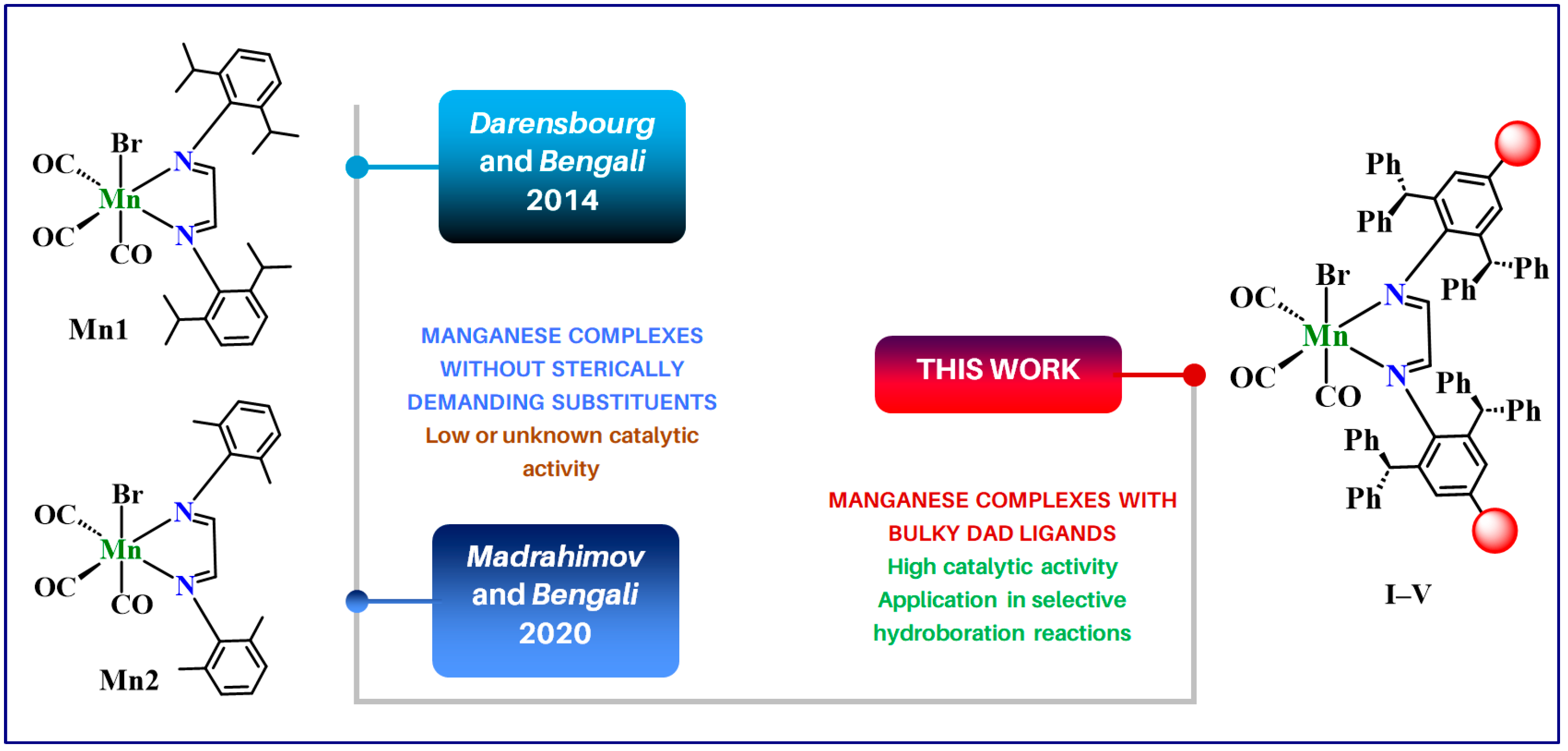 - Yempally, V.; Kyran, S.J.; Raju, R.K.; Fan, W.Y.; Brothers, E.N.; Darensbourg, D.J.; Bengali, A.A. Thermal and photochemical reactivity of manganese tricarbonyl and tetracarbonyl complexes with a bulky diazabutadiene ligand. Inorg. Chem. 2014, 53, 4081–4088. [Google Scholar] [CrossRef] [PubMed]