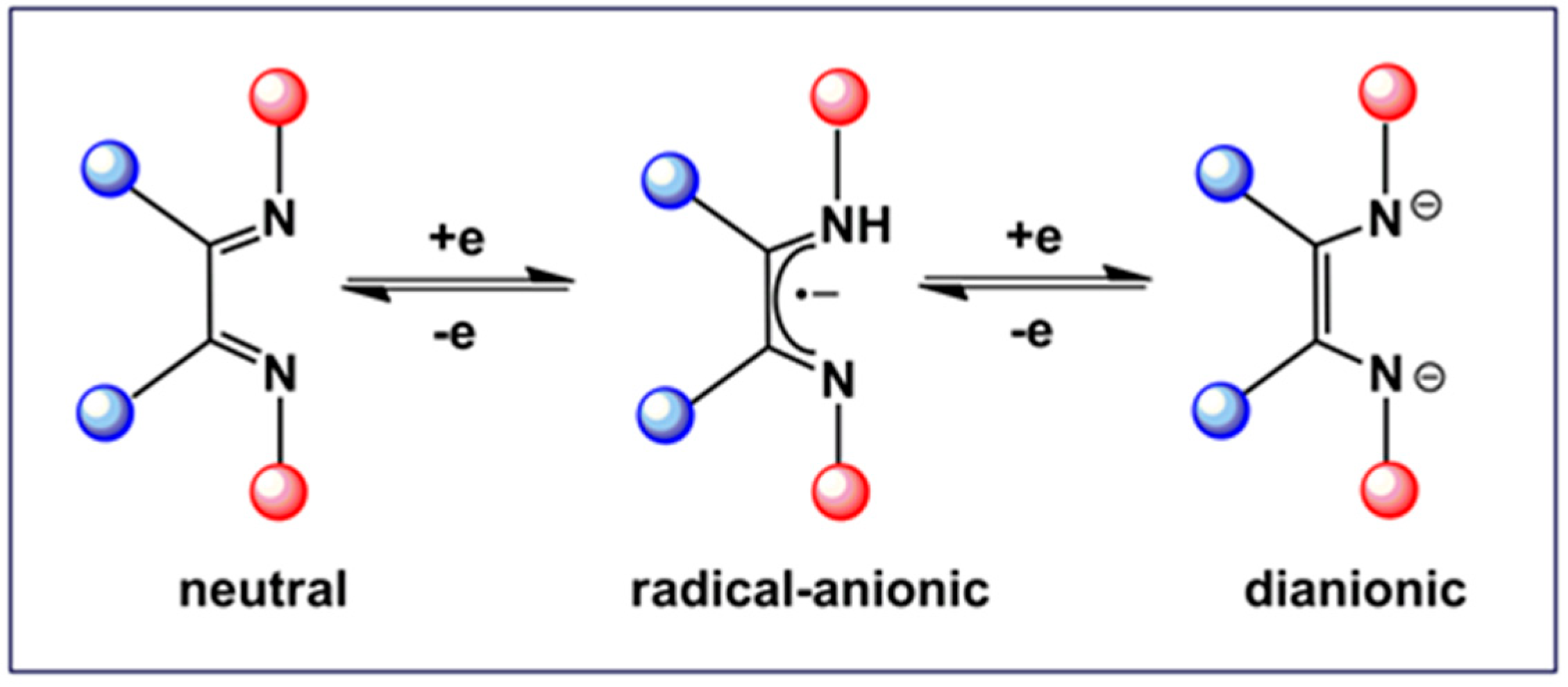 - de Zwart, F.J.; Reus, B.; Laporte, A.A.; Sinha, V.; de Bruin, B. Metrical oxidation states of 1, 4-diazadiene-derived ligands. Inorg. Chem. 2021, 60, 3274–3281. [Google Scholar] [CrossRef] [PubMed]