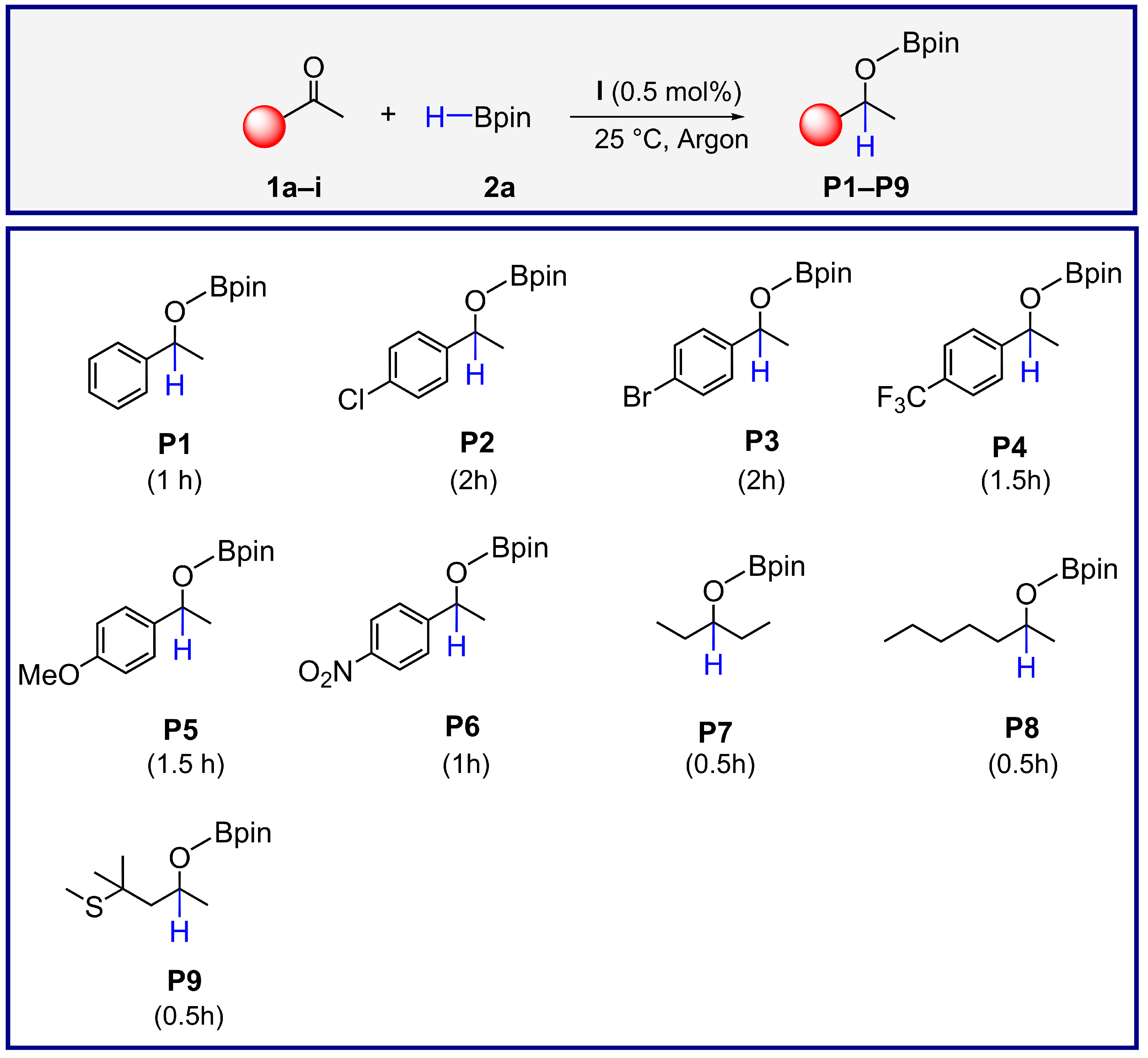 3.6. General Procedure for the Synthesis of Boronic Esters (P1–P9)