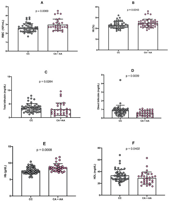 APA StyleOliveira, A. M., Fiuza, L., Figueiredo, C., Guarda, C., Santiago, R., Yahouédéhou, S., Carvalho, S., Pacheco, A. P., Lyra, I., Adorno, E. V., Barbosa, C., & Gonçalves, M. (2025). Pleiotropic Effects of Polymorphisms in the BCL11A Gene on Laboratory Parameters in Sickle Cell Anemia. International Journal of Molecular Sciences, 26(21), 10458. https://doi.org/10.3390/ijms262110458