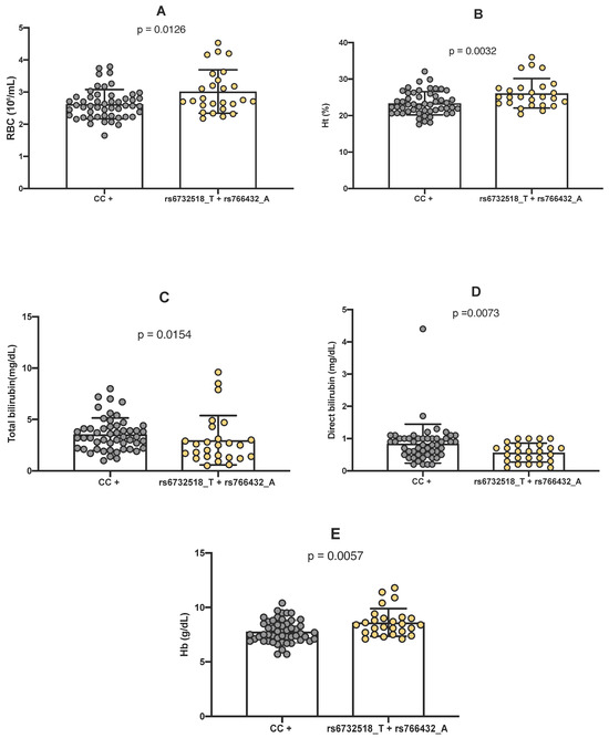 Chicago/Turabian StyleOliveira, Antonio Mateus, Luciana Fiuza, Camylla Figueiredo, Caroline Guarda, Rayra Santiago, Sètondji Yahouédéhou, Suéllen Carvalho, Ana Paula Pacheco, Isa Lyra, Elisângela Vitória Adorno, and et al. 2025. "Pleiotropic Effects of Polymorphisms in the BCL11A Gene on Laboratory Parameters in Sickle Cell Anemia" International Journal of Molecular Sciences 26, no. 21: 10458. https://doi.org/10.3390/ijms262110458