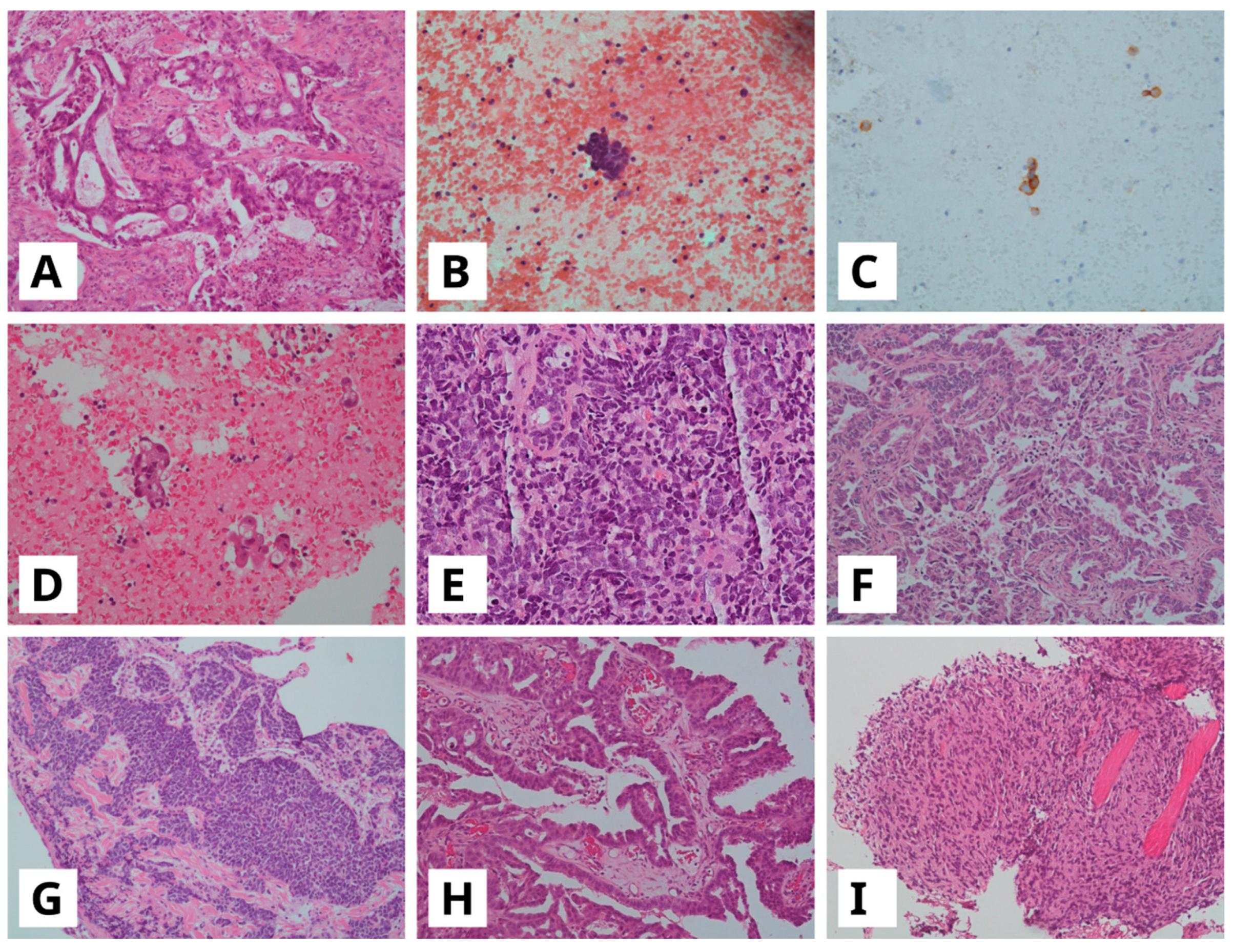 - Jin, C.B.; Yang, L. Histological transformation of non-small cell lung cancer: Clinical analysis of nine cases. World J. Clin. Cases 2021, 9, 4617–4626. [Google Scholar] [CrossRef] [PubMed] [PubMed Central]