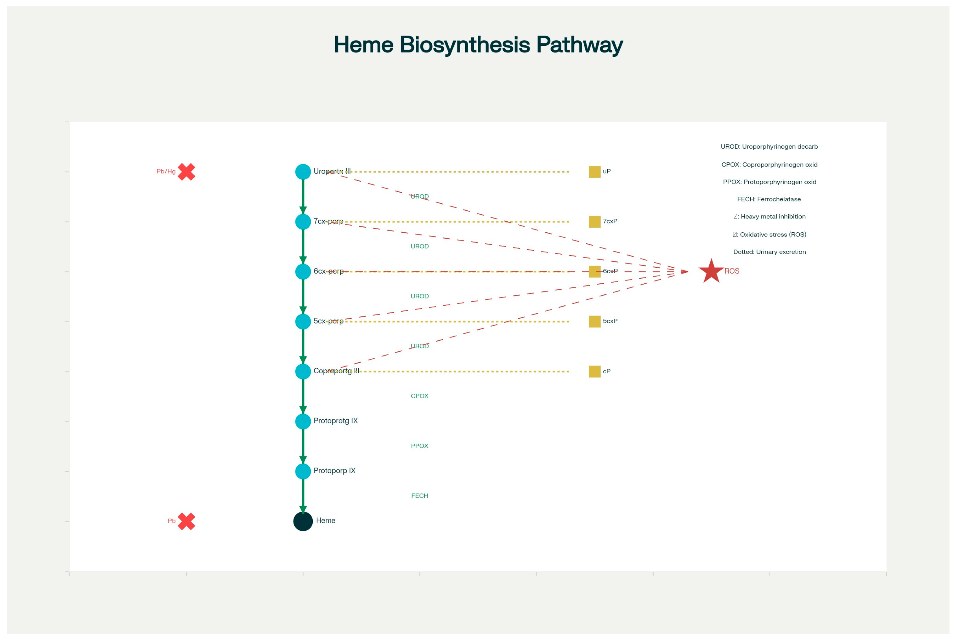 - Uroporphyrin (uP): 8-carboxyl porphyrin, the earliest intermediate.