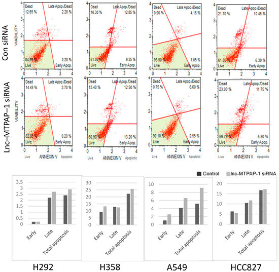 2.3. Lnc-MTPAP-1 Knockdown Induces Apoptosis in Lung Cancer Cell Lines