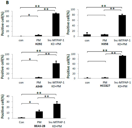 Chicago/Turabian StylePark, Ji Won, Daeun Kang, Min Hyeok Lee, Yeonwoo Lee, Su Yel Lee, Sin Yung Woo, Keum-Jin Yang, In Beom Jeong, Hee Sun Park, Ji Woong Son, and et al. 2025. "Long Noncoding RNA Lnc-MTPAP-1 Overexpressed by Particulate Matter Suppresses Apoptosis in Non-Small Cell Lung Cancer (NSCLC) Cells" International Journal of Molecular Sciences 26, no. 21: 10486. https://doi.org/10.3390/ijms262110486