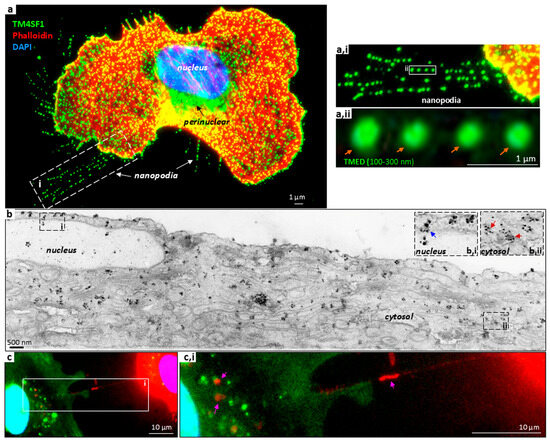 - TMED recruited passenger molecules. Mapping the proteins recruited to TMEDs is highly desirable as it will (i) permit a better understanding of how cell signals are transmitted from cell surface to nucleus for gene expression regulation, (ii) elucidate proteins involved in intercellular interactions via nanopodia for the orchestration of blood vessel development, and (iii) open a new gateway for understanding the oncogenic transformation of epithelial cells to tumor cells [38,39].