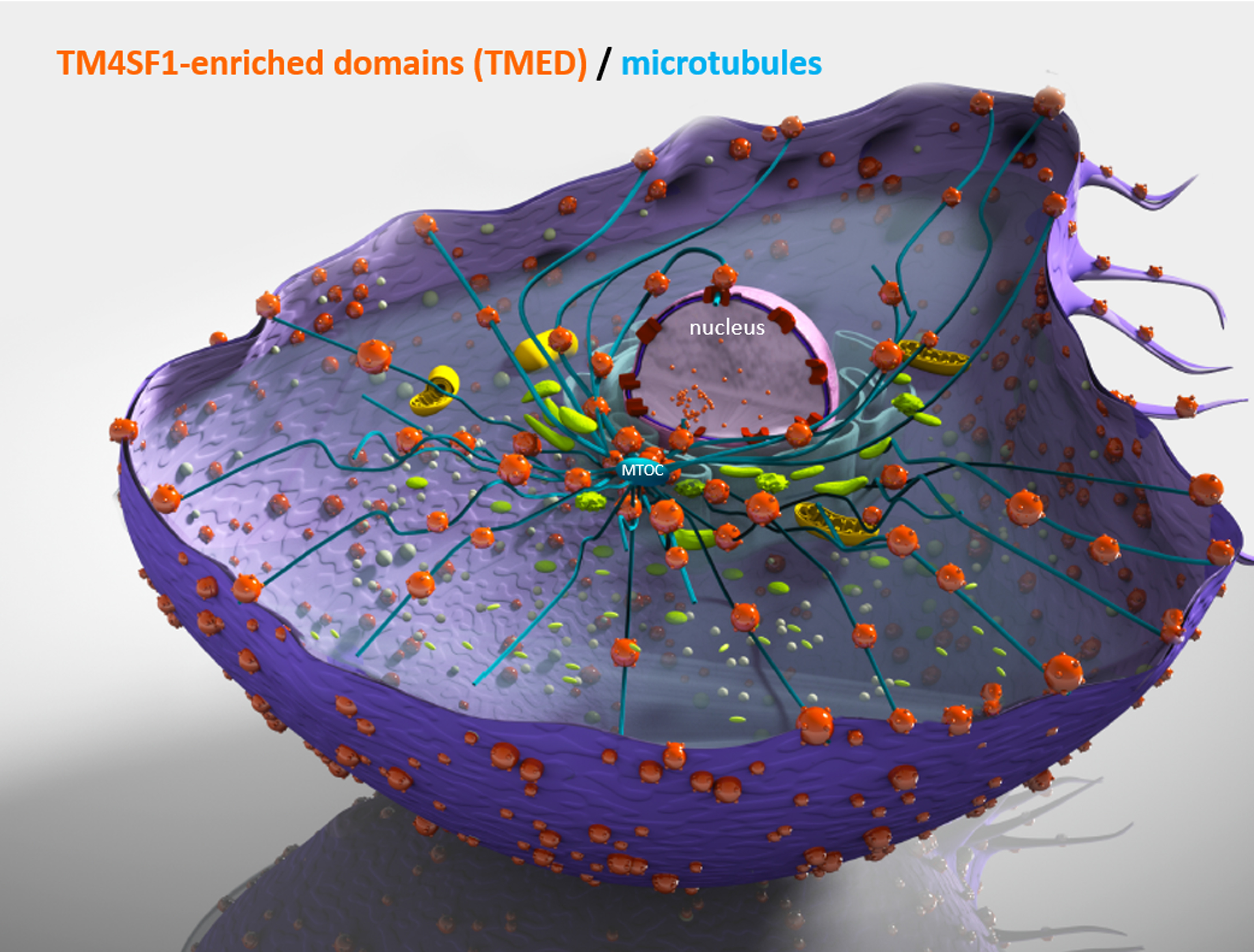 - TMED recruited passenger molecules. Mapping the proteins recruited to TMEDs is highly desirable as it will (i) permit a better understanding of how cell signals are transmitted from cell surface to nucleus for gene expression regulation, (ii) elucidate proteins involved in intercellular interactions via nanopodia for the orchestration of blood vessel development, and (iii) open a new gateway for understanding the oncogenic transformation of epithelial cells to tumor cells [38,39].