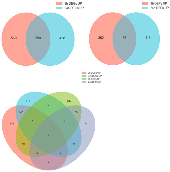 Joint analysis of the DEGs and DEPs in 9 h and 24 h samples.