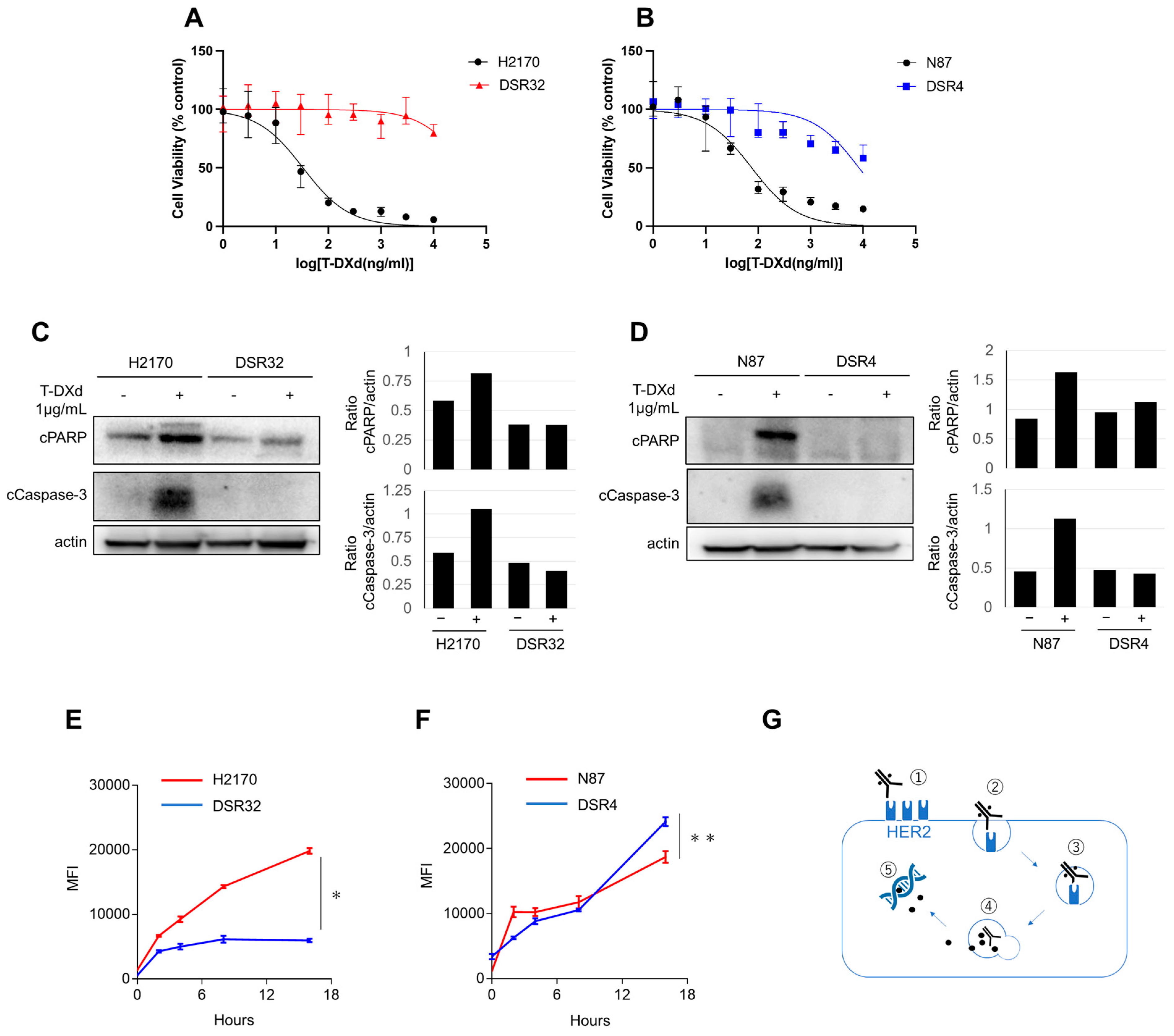 2.1. T-DXd-Resistance and Its Relationship to Internalization and Lysosomal Transport