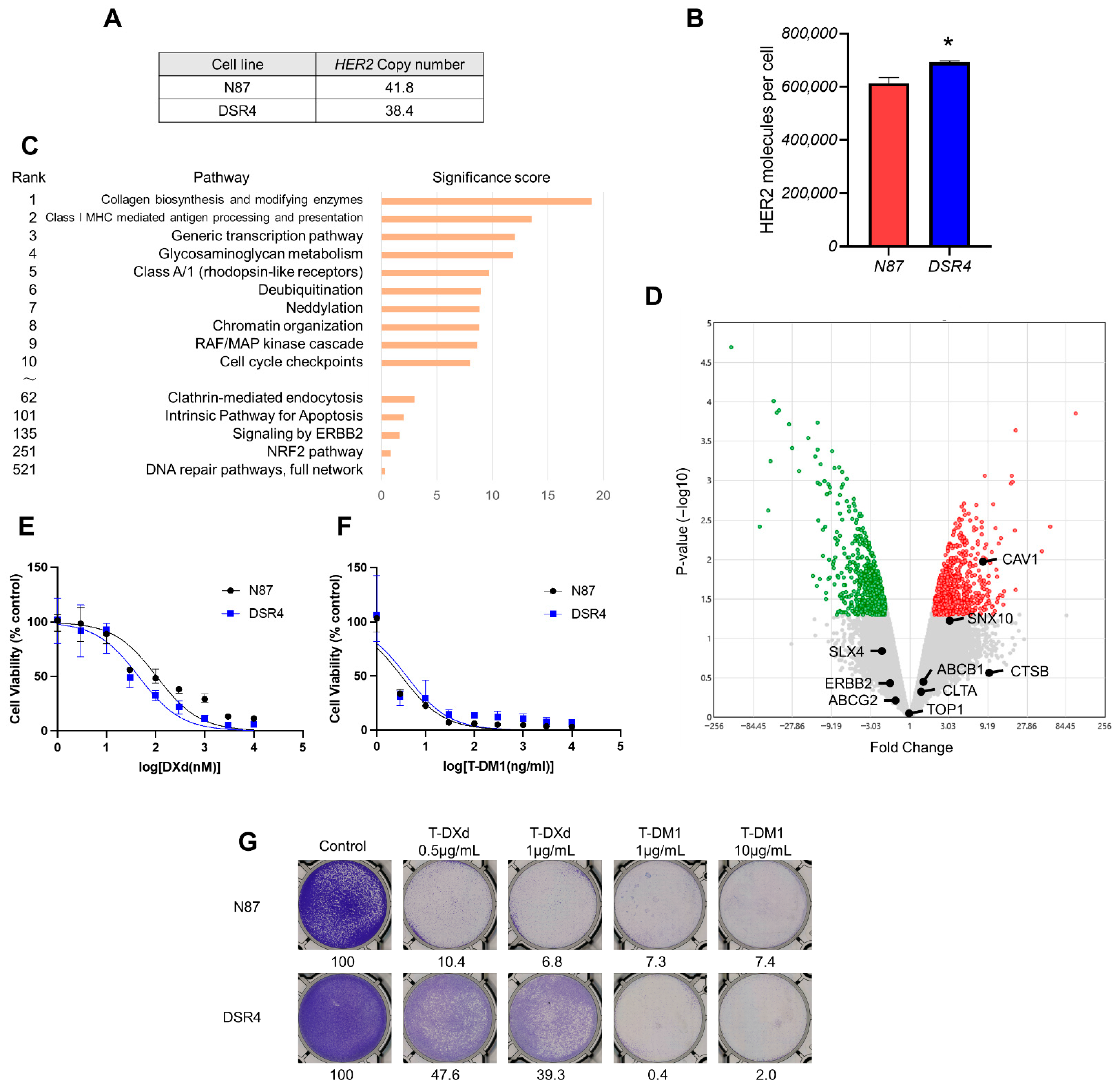 2.2. HER2 Gene Copy Number Reduction Leads to Impaired T-DXd Internalization in Resistant Cells