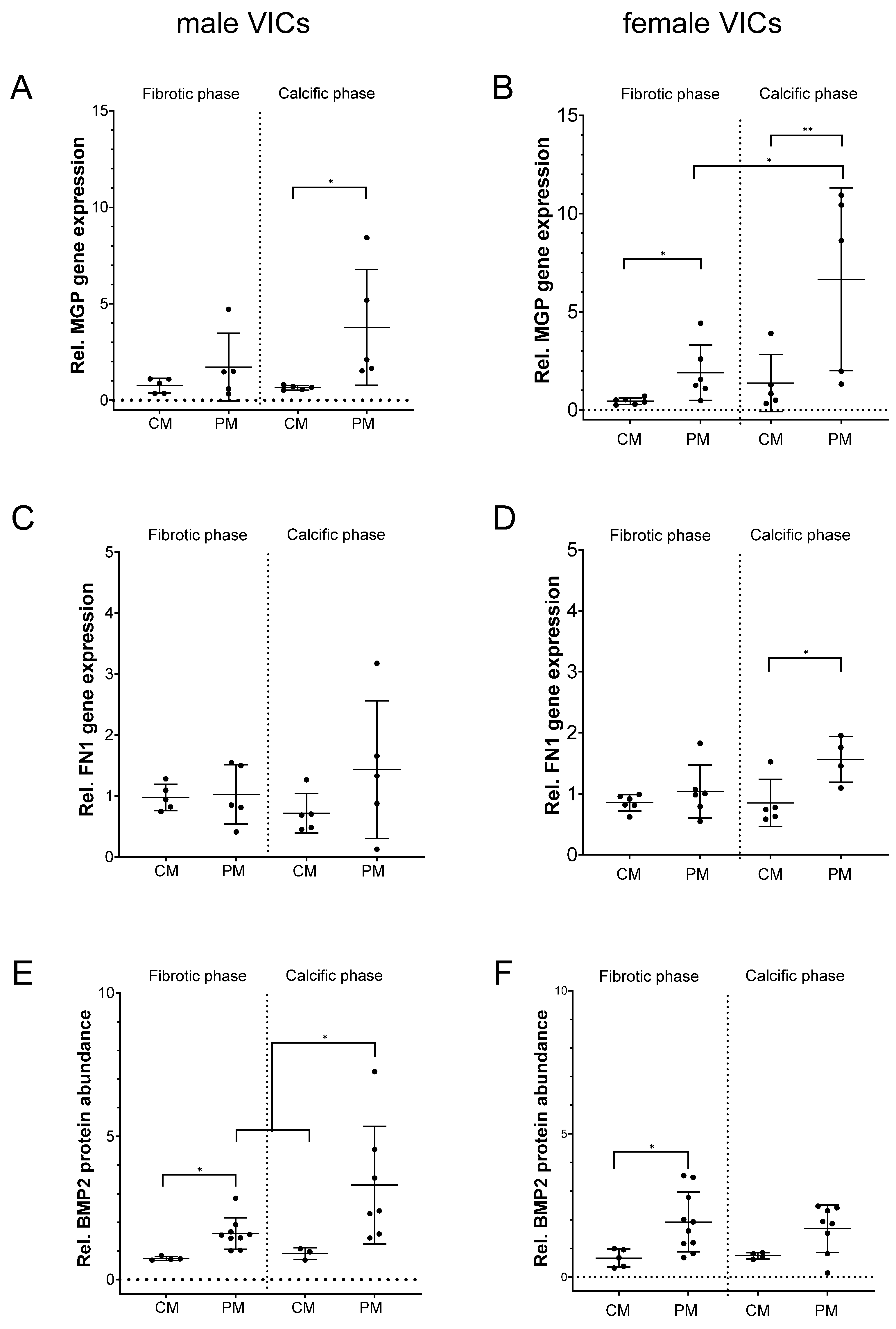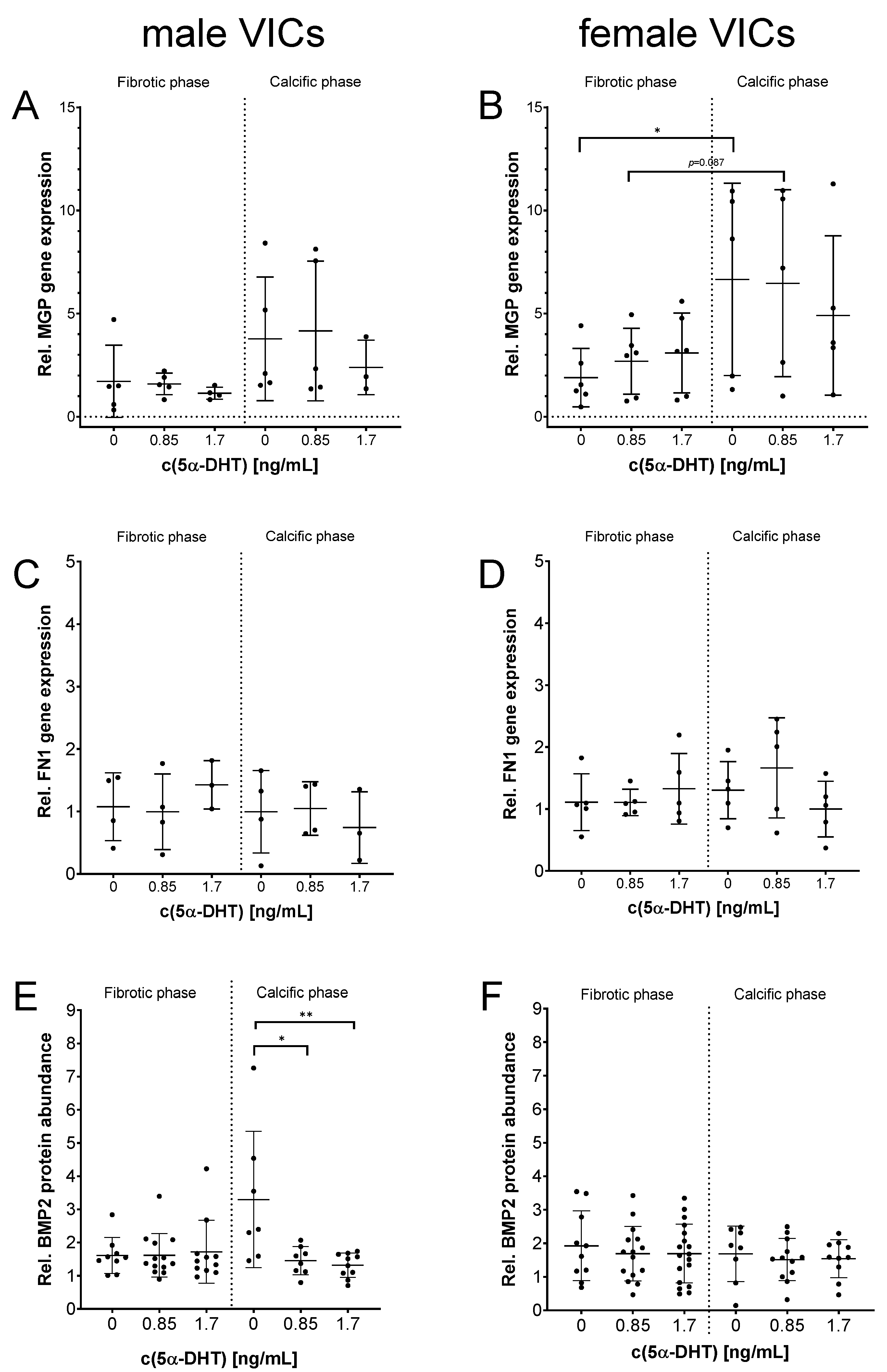 2.2. MGP, FN1 and BMP2 Expression in Relation to Donor Sex and After Exposure to 5α-DHT