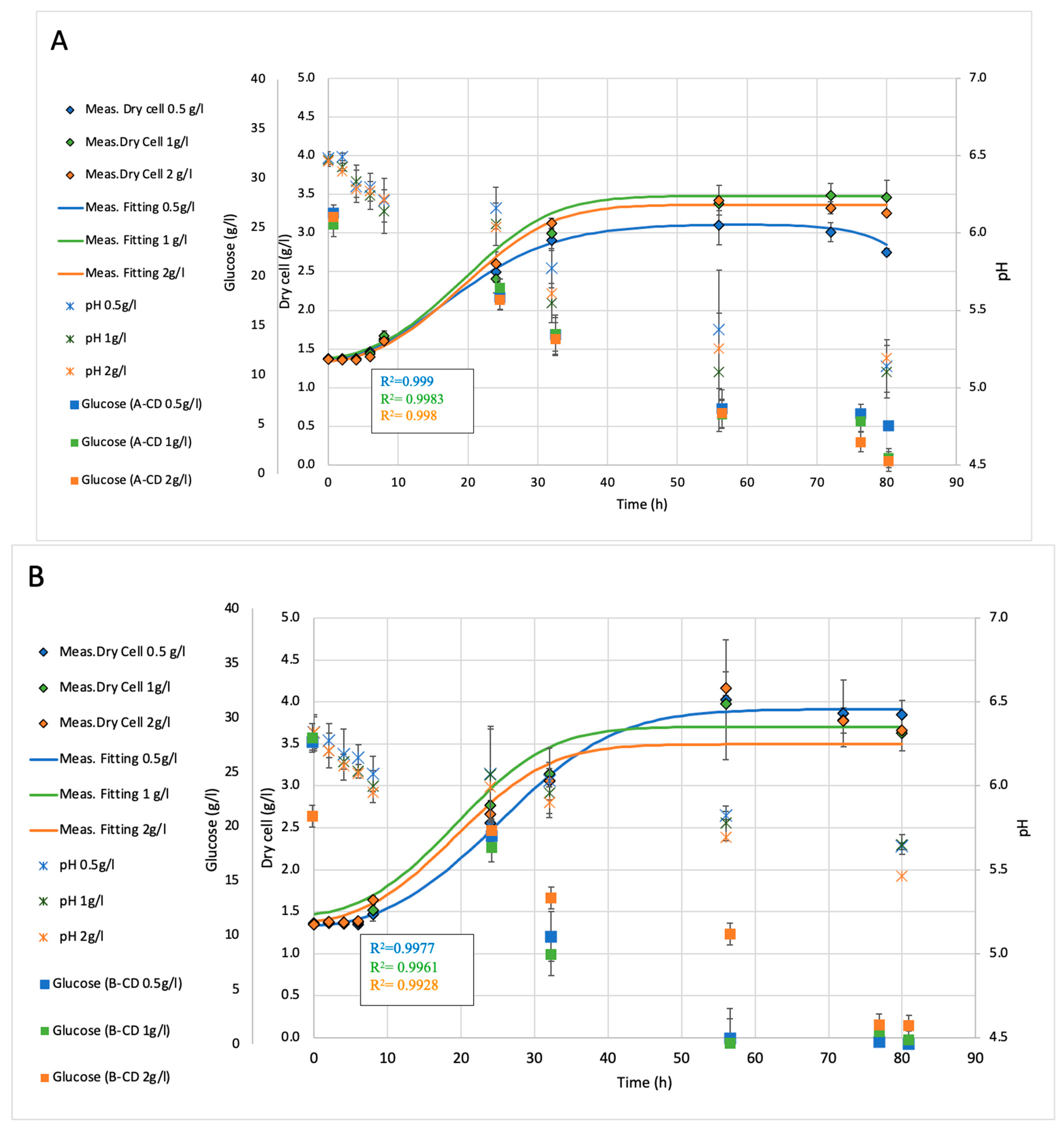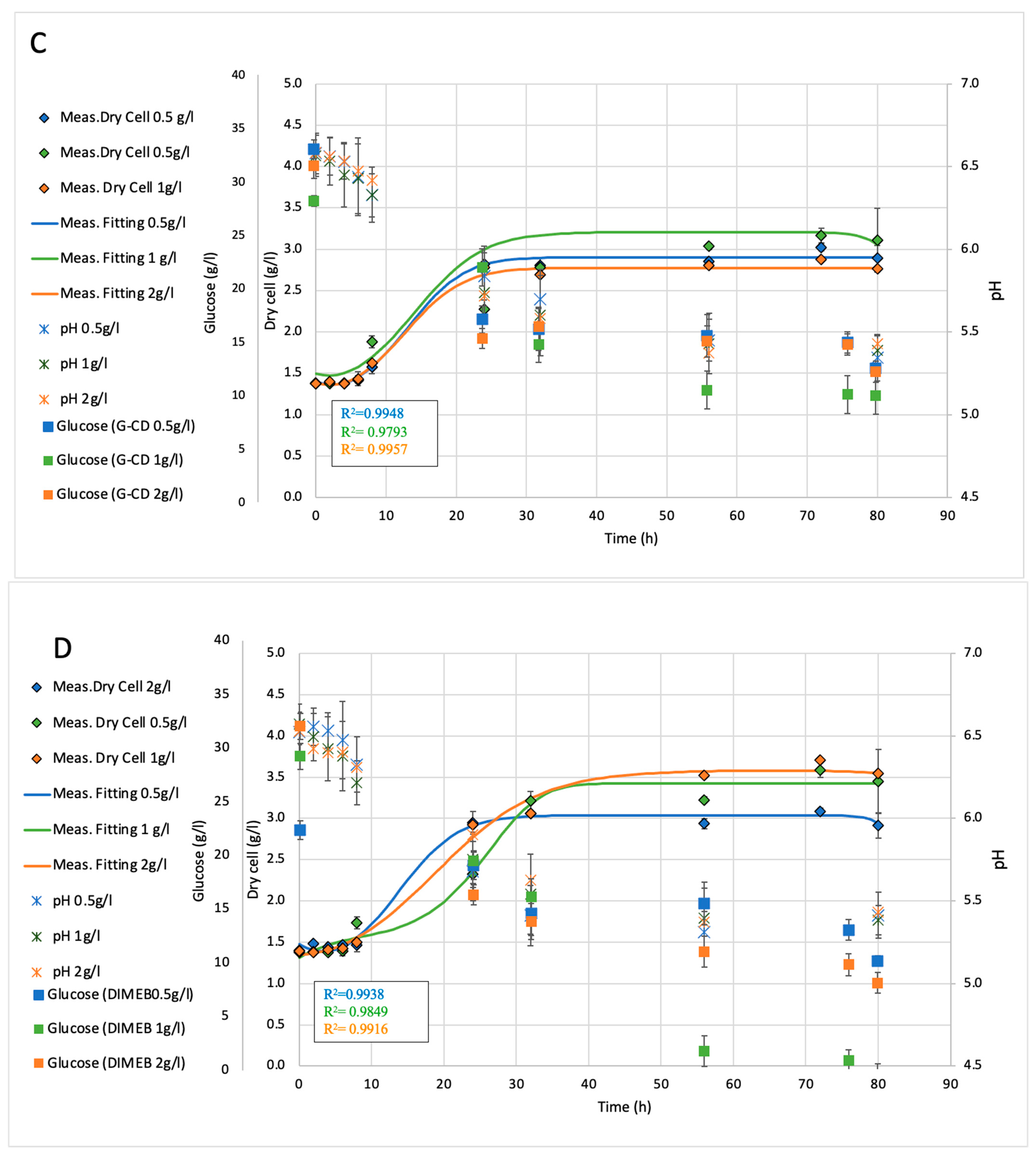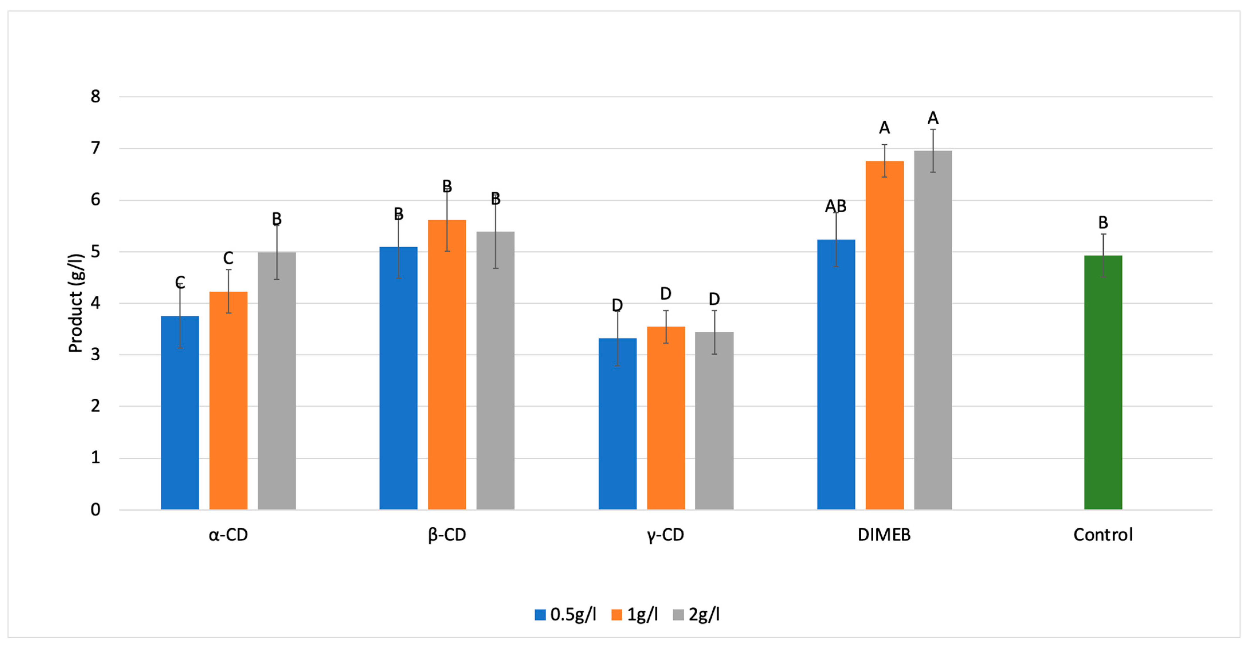 2.1.2. Effect of Cyclodextrin Treatments on Biomass Concentration at 50 h