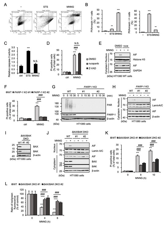2.1. MNNG Induces Parthanatos in a BAX/BAK-Dependent Manner