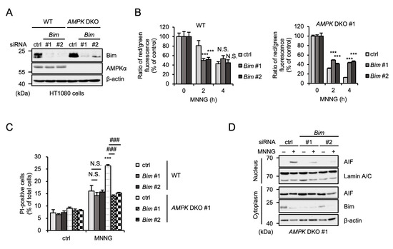 2.5. Bim Is Responsible for the Enhancement of MNNG-Induced Parthanatos in AMPK DKO HT1080 Cells