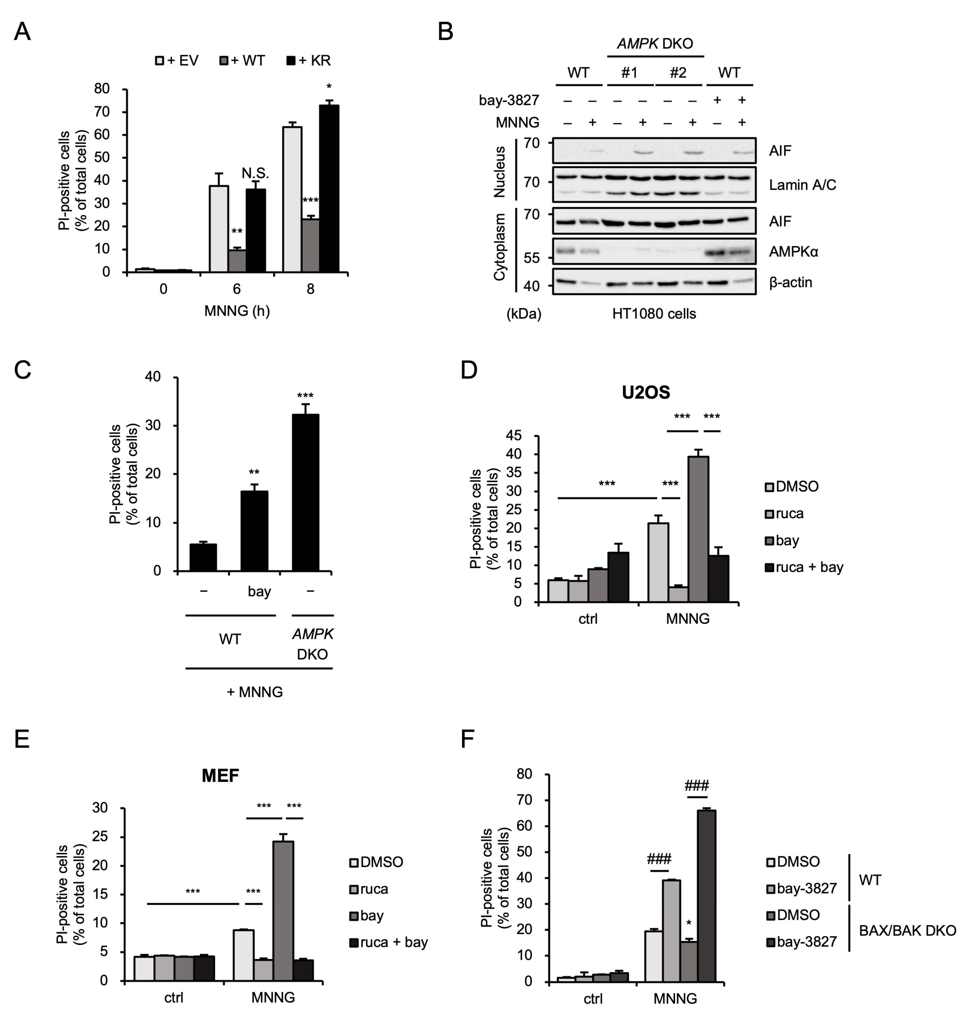 2.3. AMPK Limits MNNG-Induced Parthanatos Mediated by BAX/BAK-Independent Pathway