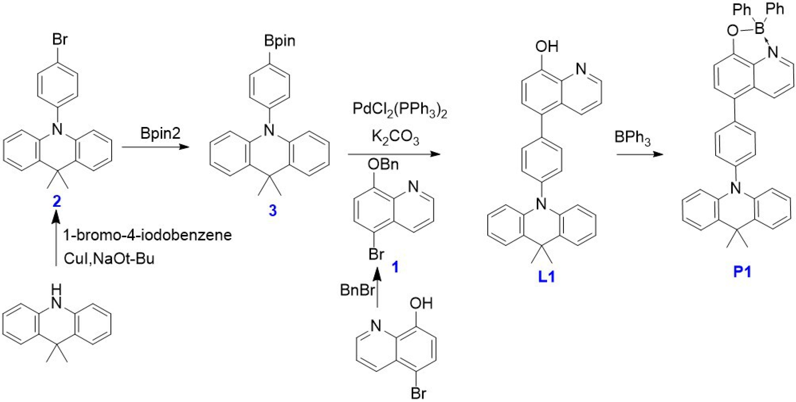 2.1. Design and Synthesis of the Four-Coordinate Emitter