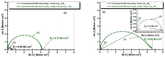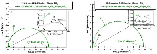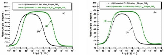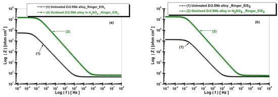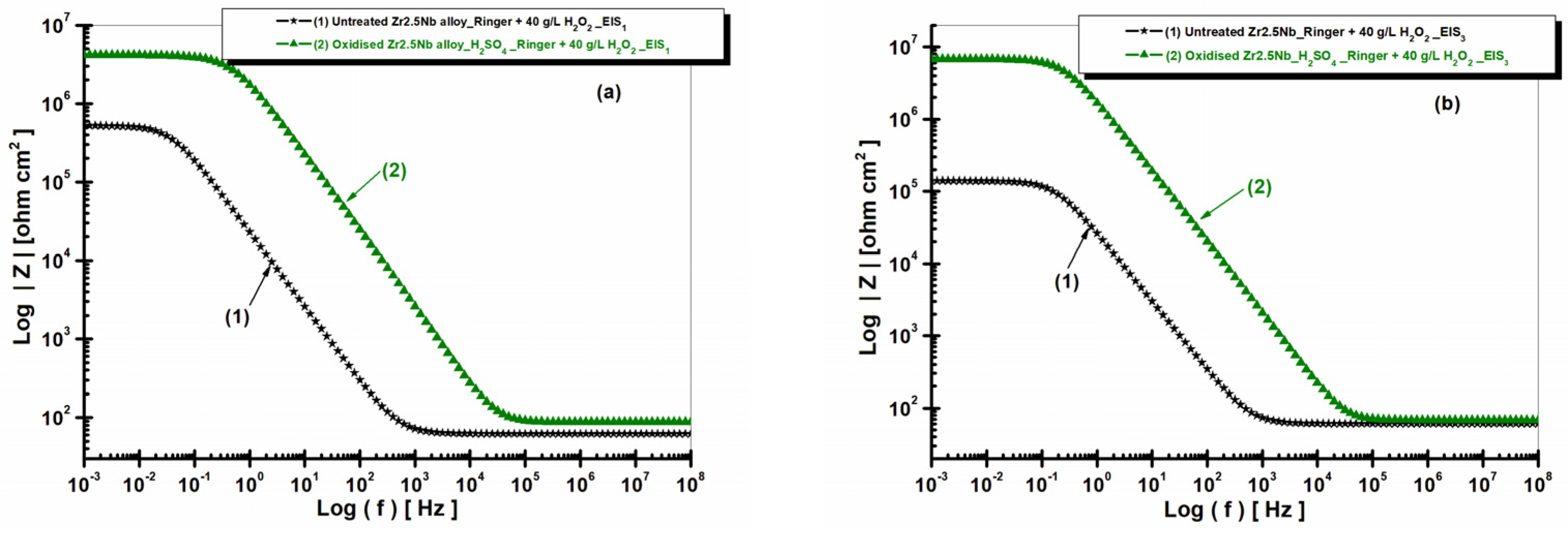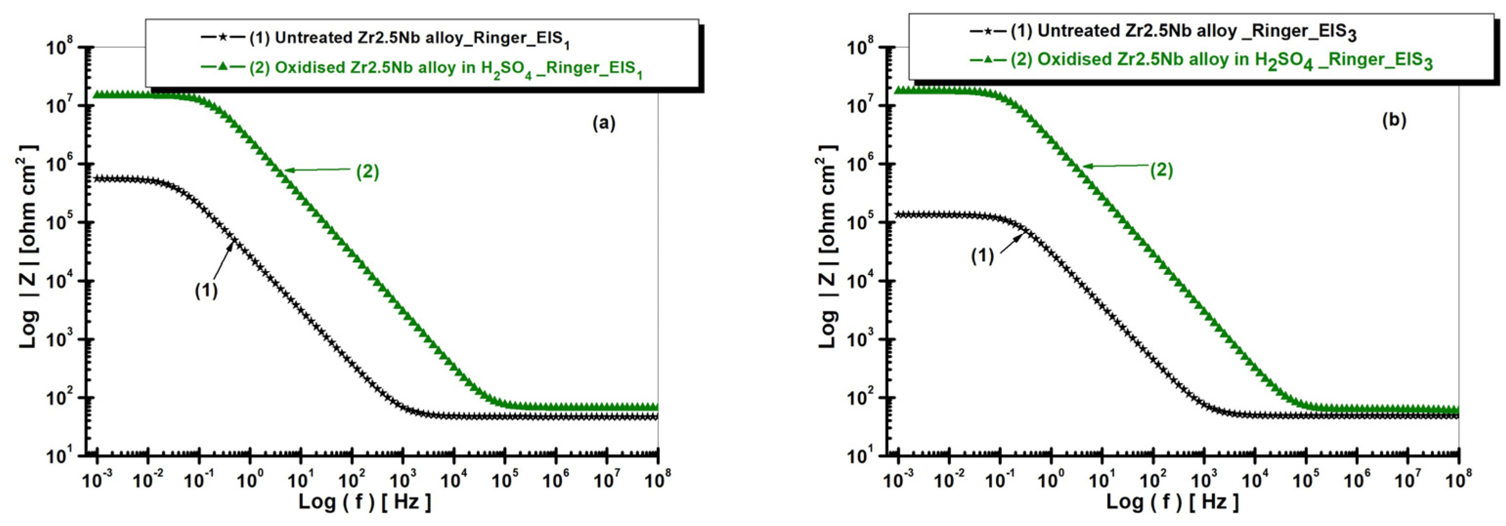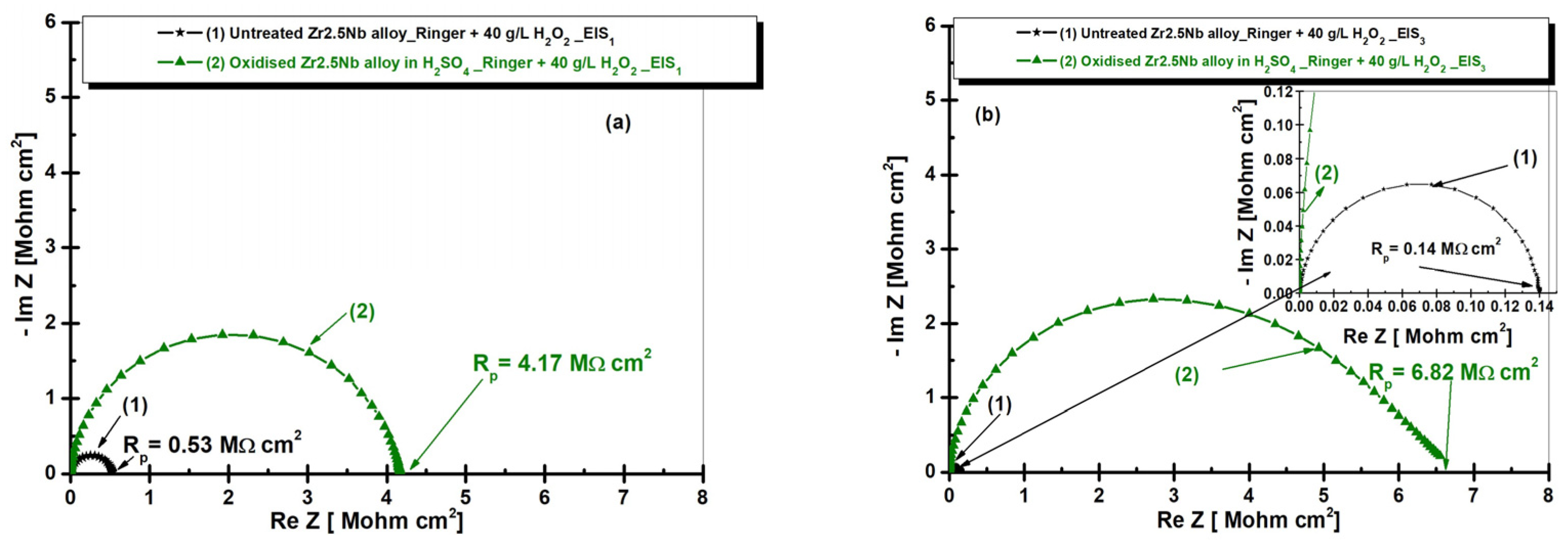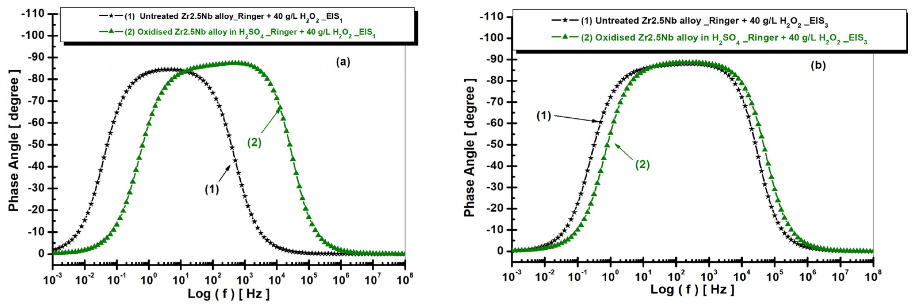 2.3.2. Electrochemical Impedance Spectroscopy (EIS) of Untreated and Electrochemically Modified Zr2.5Nb Alloy After Immersion in Physiological and Pathological Environment